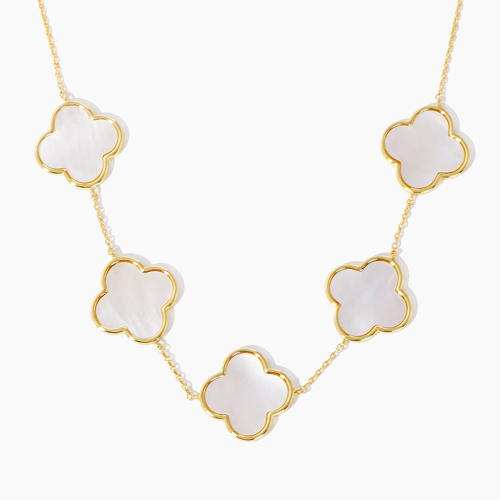 White Gold Dipped Mother of Pearl Quatrefoil Station Necklace