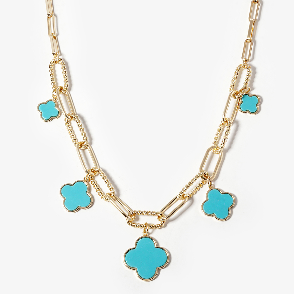 Gold Dipped Multi Quatrefoil Pendant Necklace