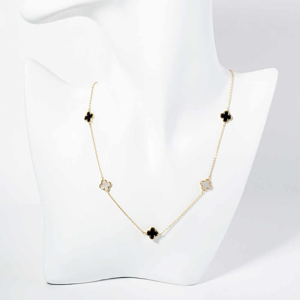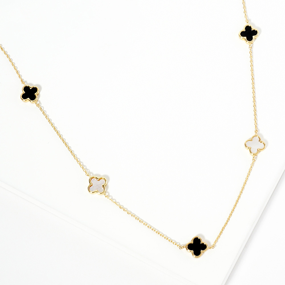 Gold Dipped Mother Of Pearl Quatrefoil Station Necklace