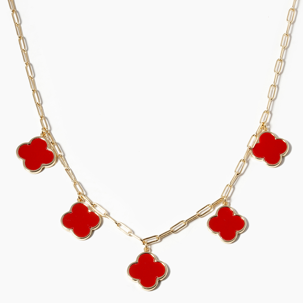 Gold Dipped Quatrefoil Pendant Station Necklace