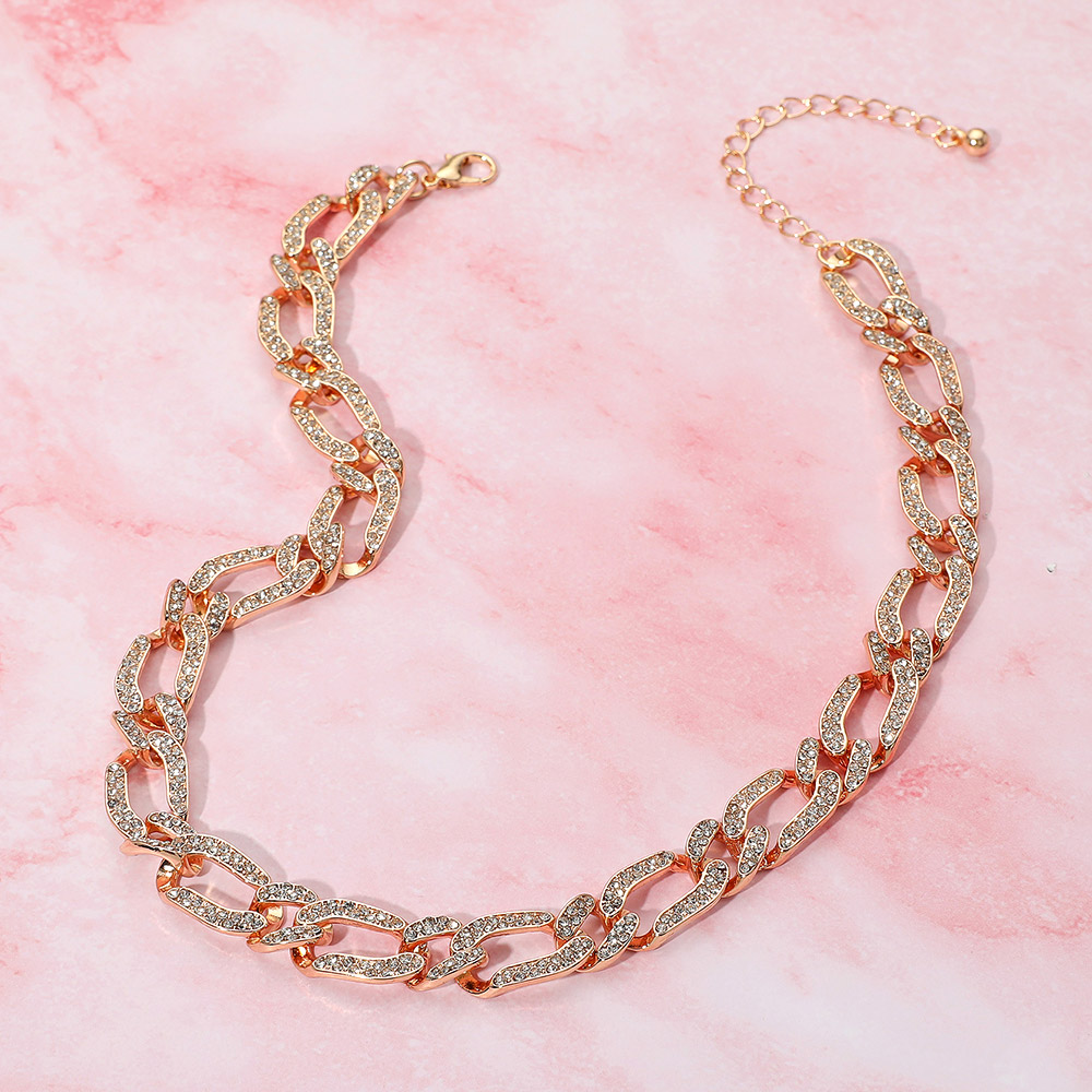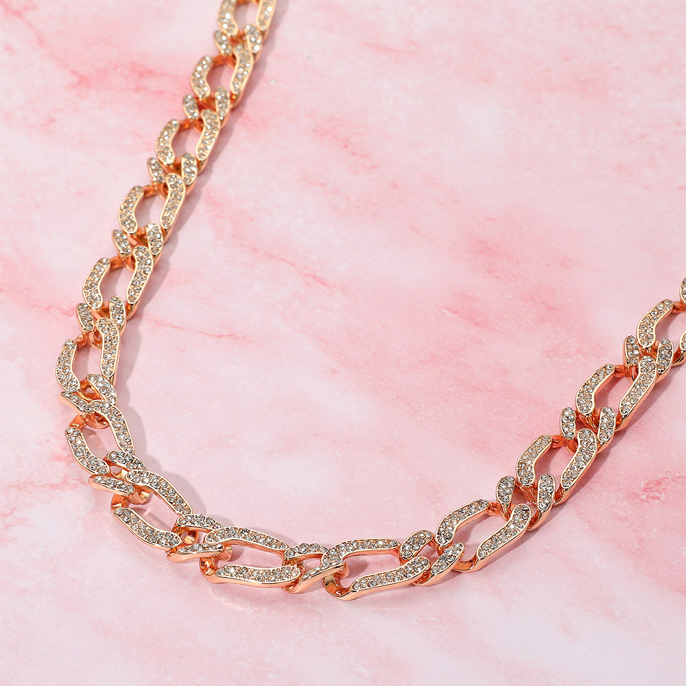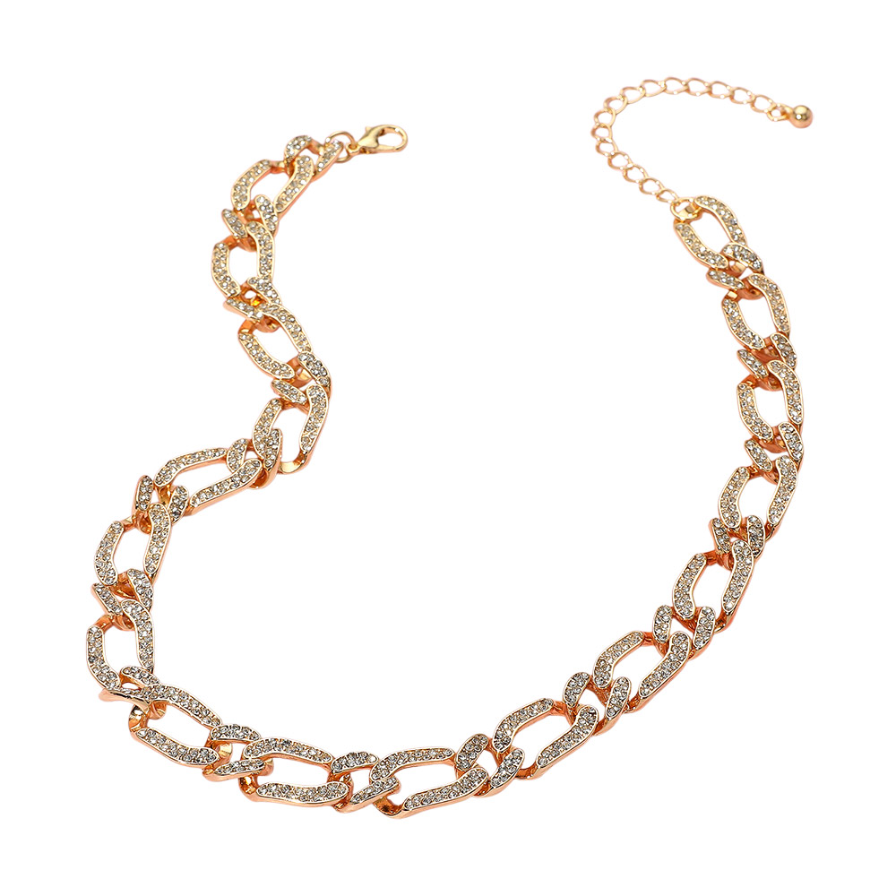 Details • Necklace Size : 16" + 3" L • Decor Size : 0.5" L • Make a bold statement with this chunky chain link necklace encrusted with shimmering accents. Perfect for dressing up casual looks or enhancing evening outfits with a touch of glamour and edge. • Gold Dipped • Lead and Nickel Compliant