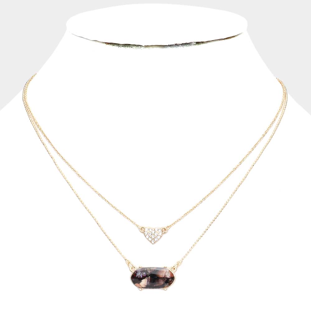 Heart Hexagon Bead Pendant Double Layered Necklace