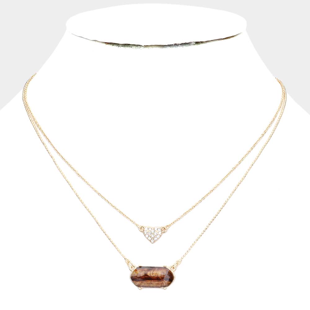 Heart Hexagon Bead Pendant Double Layered Necklace