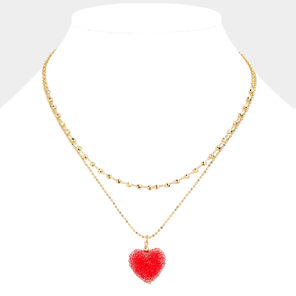 CZ Stone Heart Cluster Drop Pendant Accent Rhinestone Paved Necklace