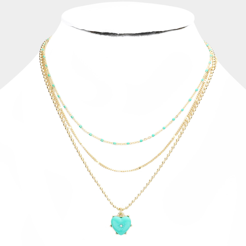 3PCS - Metal Heart Locket Charm Pearl Ceramic Metal Ball Beaded Stretch Multi Layered Bracelets