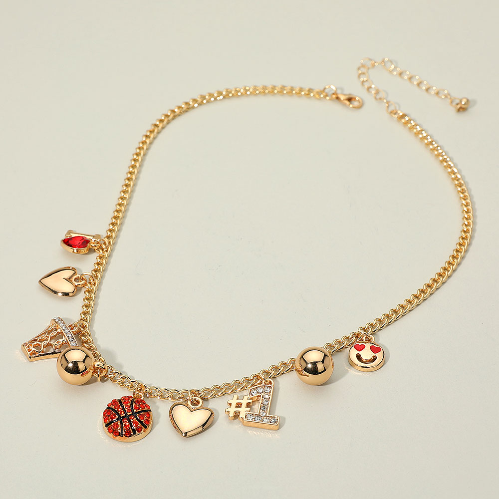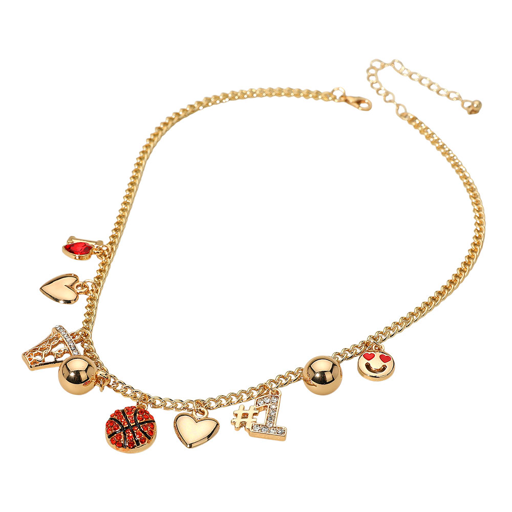 Heart Smile Number One Basketball Charm Station Necklace Heart Smile Number One Basketball Charm Station Necklace Heart Smile Number One Basketball Charm Station Necklace