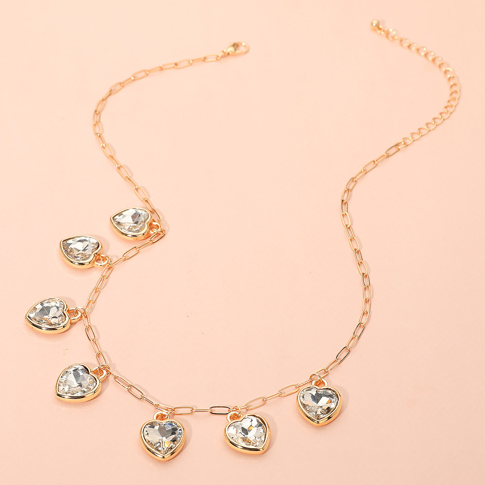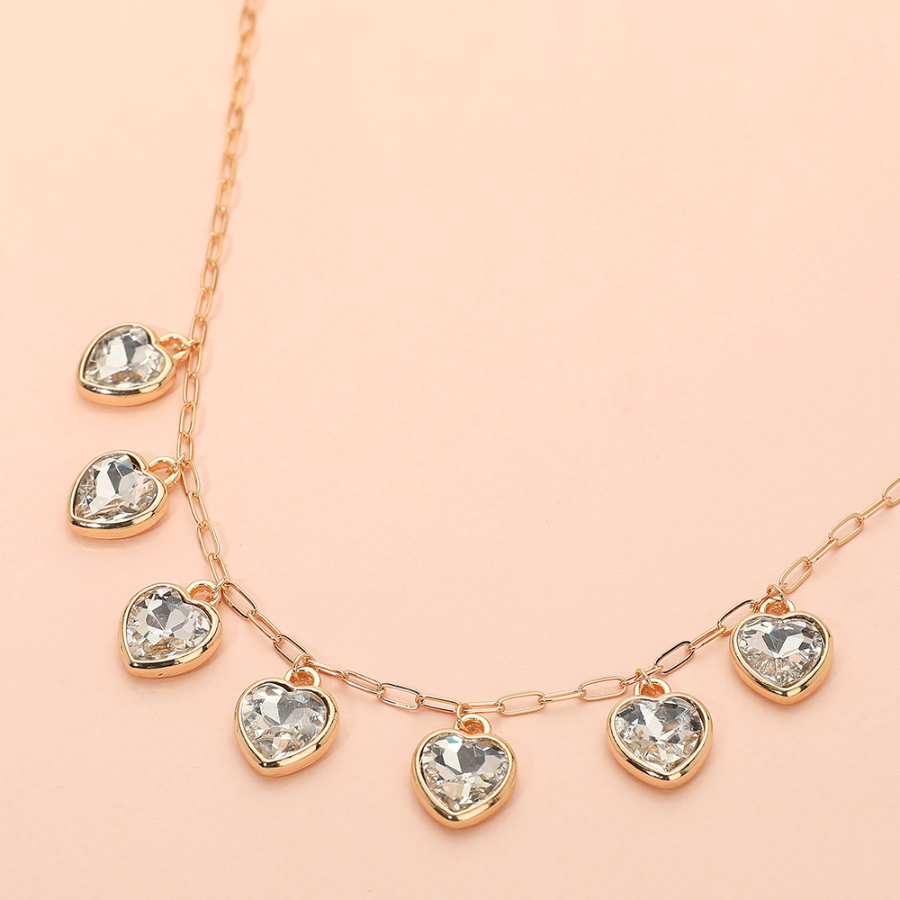 • Elegant chain necklace featuring dangling faceted heart charms that add sparkle and movement to any look. Lightweight, adjustable, and perfect for layering or wearing alone. A chic accessory for gifting or daily wear.