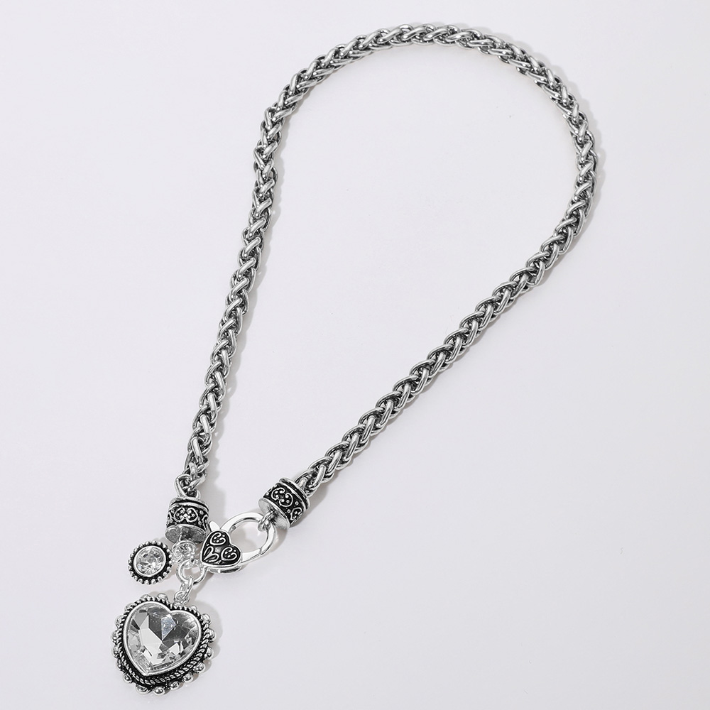 • Romantic braided chain necklace featuring an ornate heart-shaped pendant with intricate detailing. Perfect for adding vintage charm and elegance to your everyday or special occasion look.