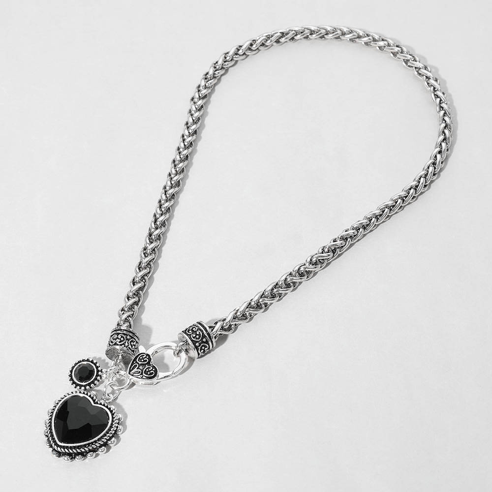 • Romantic braided chain necklace featuring an ornate heart-shaped pendant with intricate detailing. Perfect for adding vintage charm and elegance to your everyday or special occasion look.