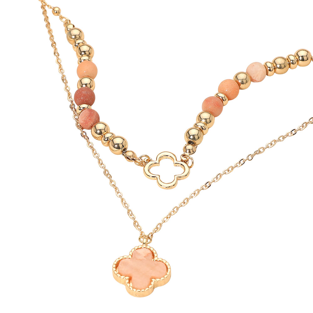 • Elevate your style with a layered quatrefoil pendant necklace featuring adjustable chains and delicate bead details for a refined, modern look. Ideal for wearing solo or stacked, this versatile accessory complements casual outfits, special occasions, and gift giving.