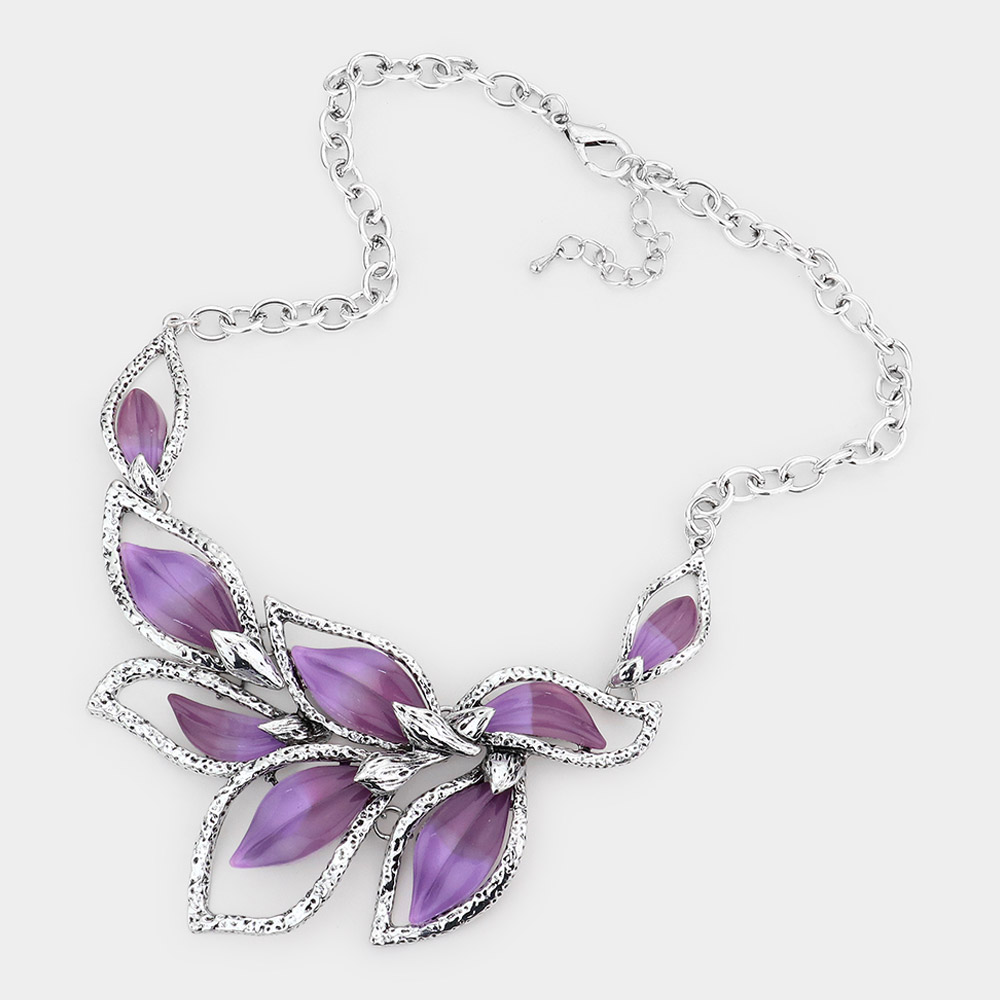 Colored Rose Butterfly Rhinestone Vine Necklace