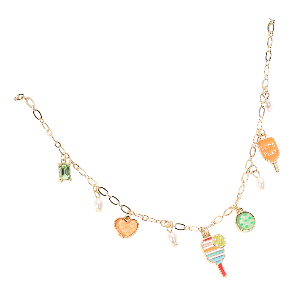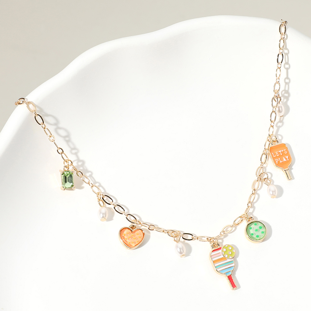 Lets Play Message Enamel Pickleball Pearl Charm Station Necklace