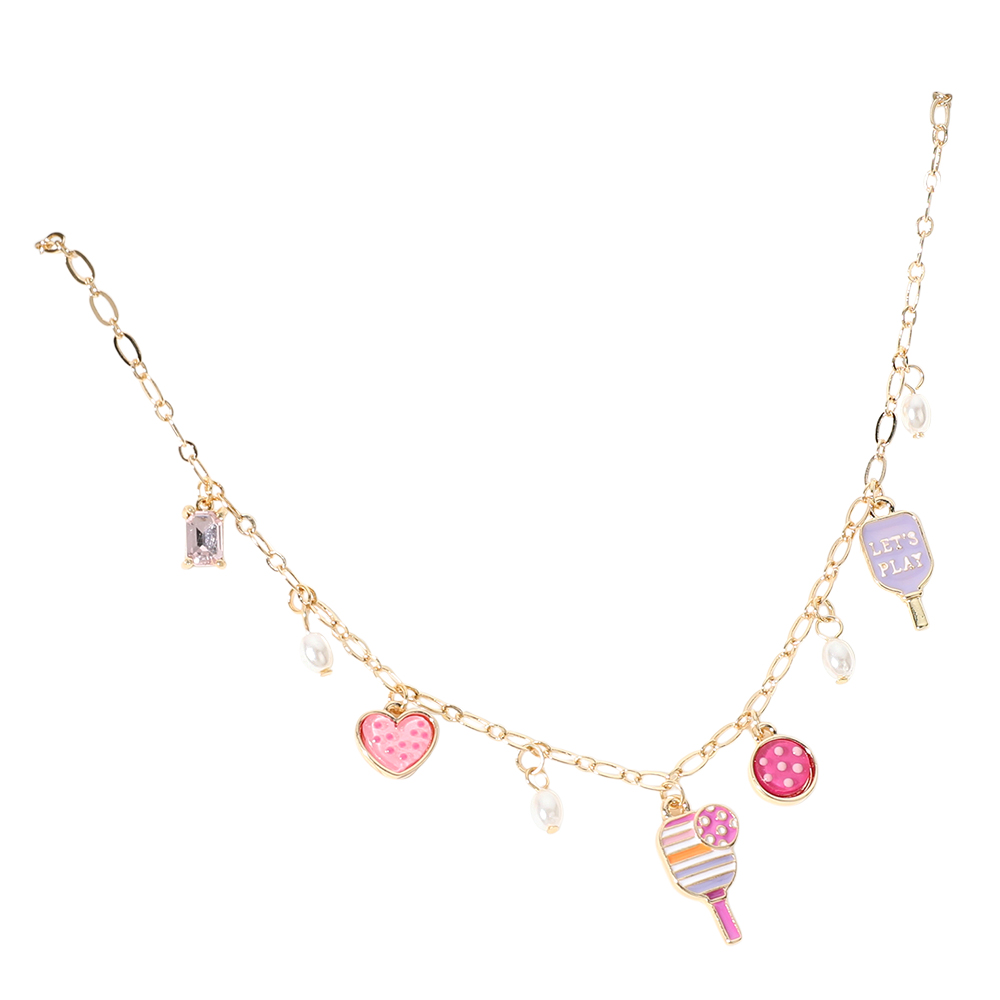 Lets Play Message Enamel Pickleball Pearl Charm Station Necklace