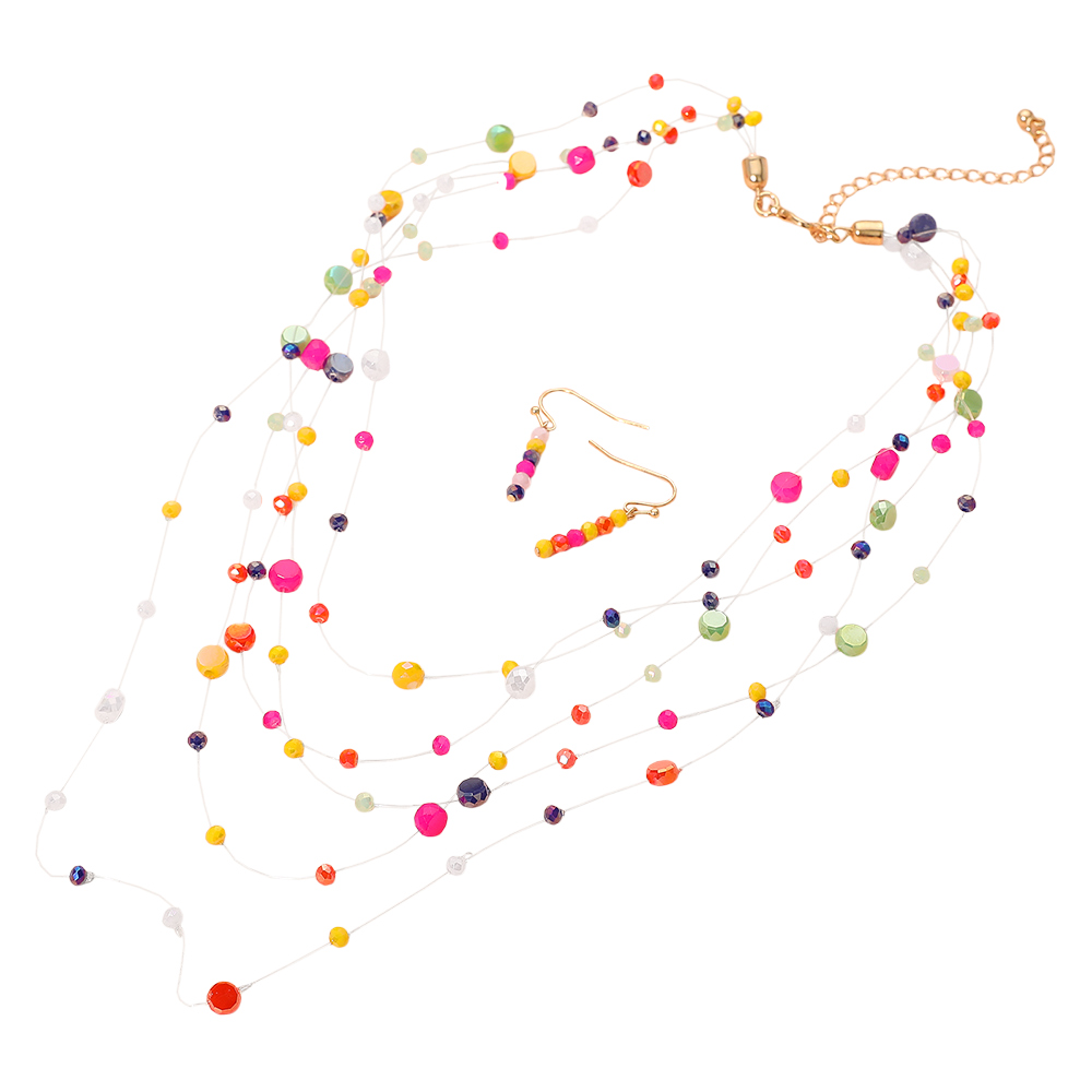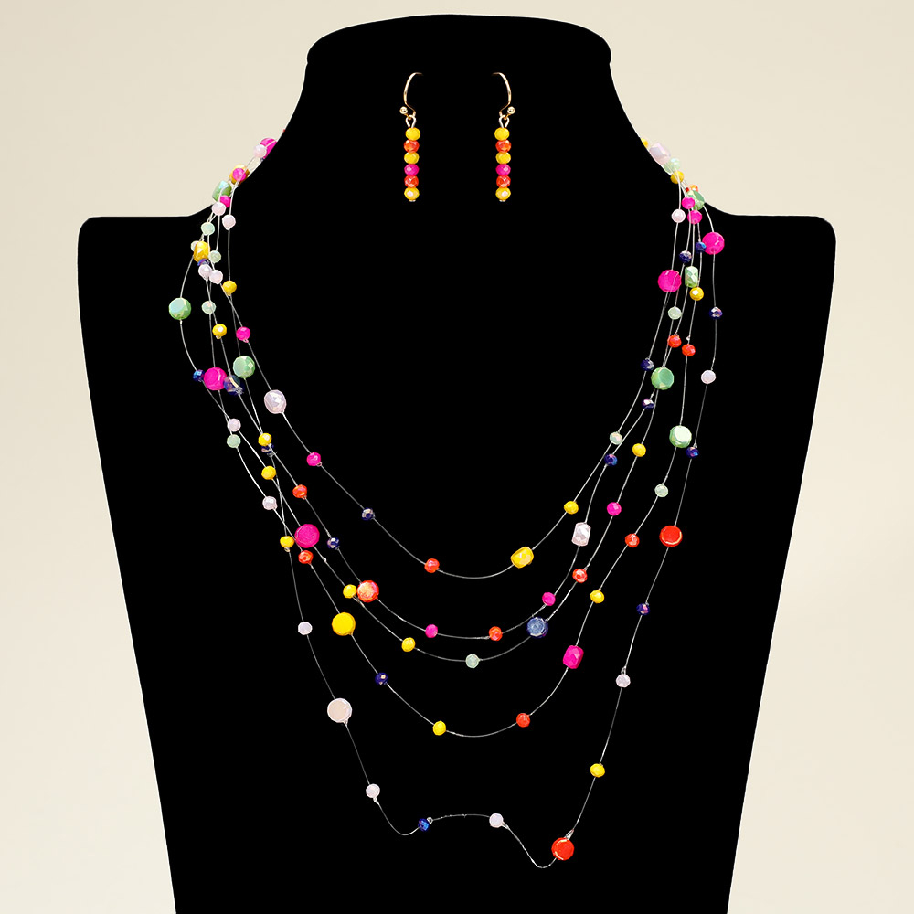 Teardrop Glass Stone Flower Pointed Evening Necklace