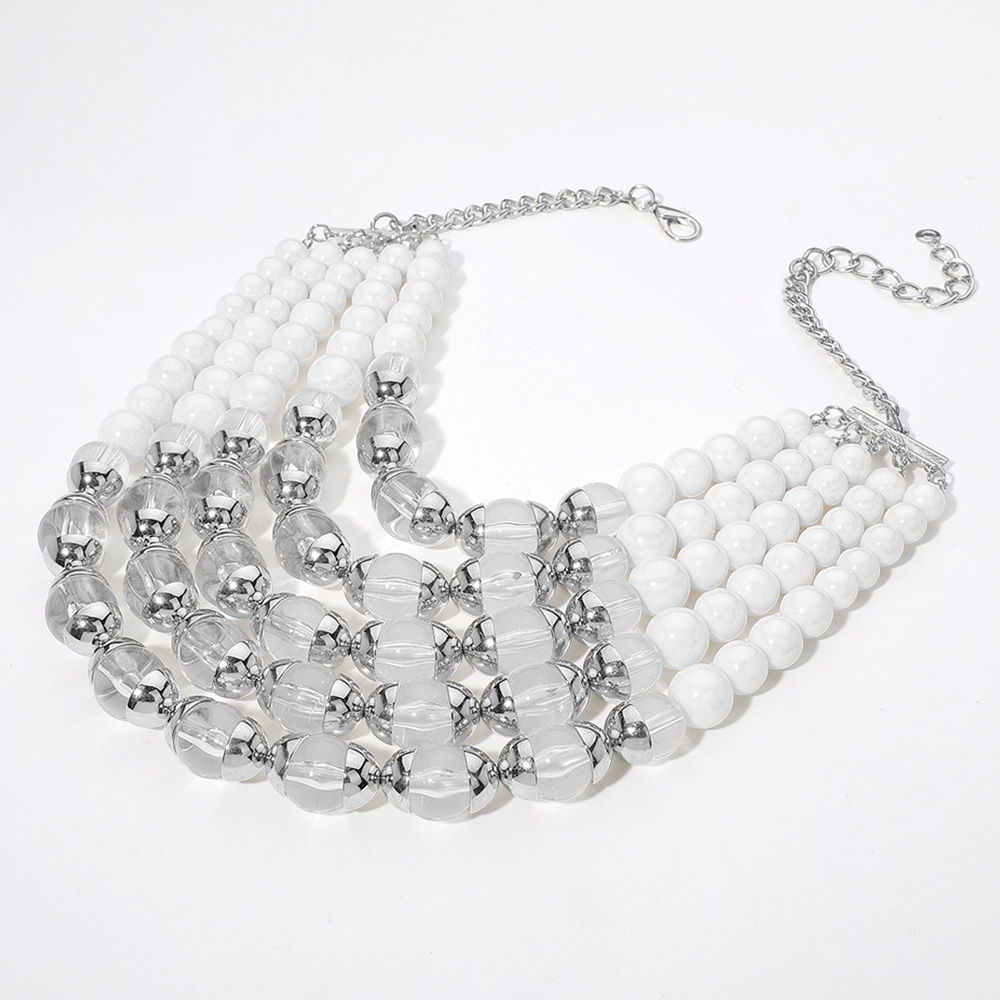 Lucite Bead Accented Multi Layered Bib Necklace