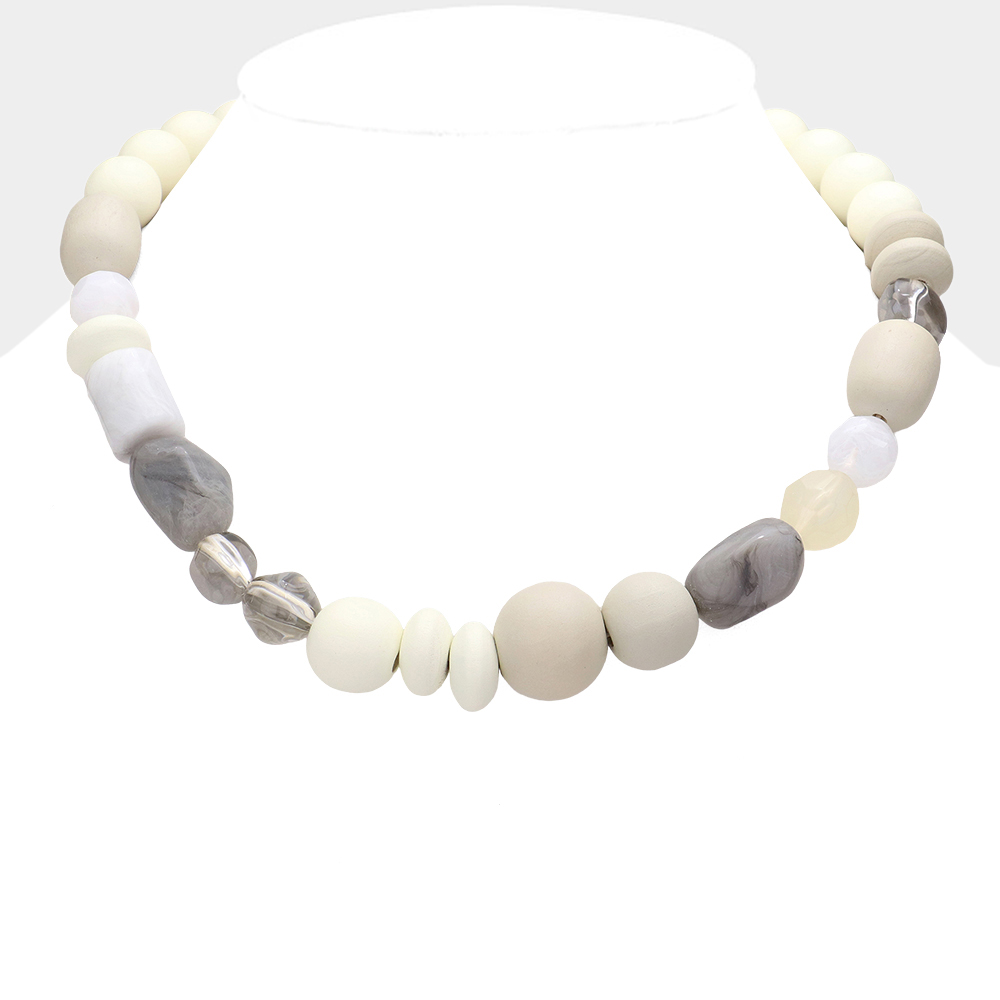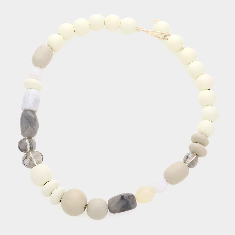 Marbled Bead Wood Ball Collar Toggle Necklace