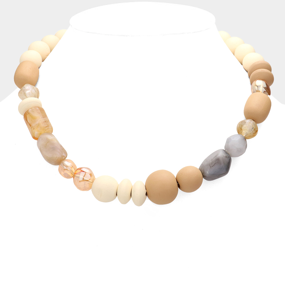 Wood Resin Bead Bib Necklace