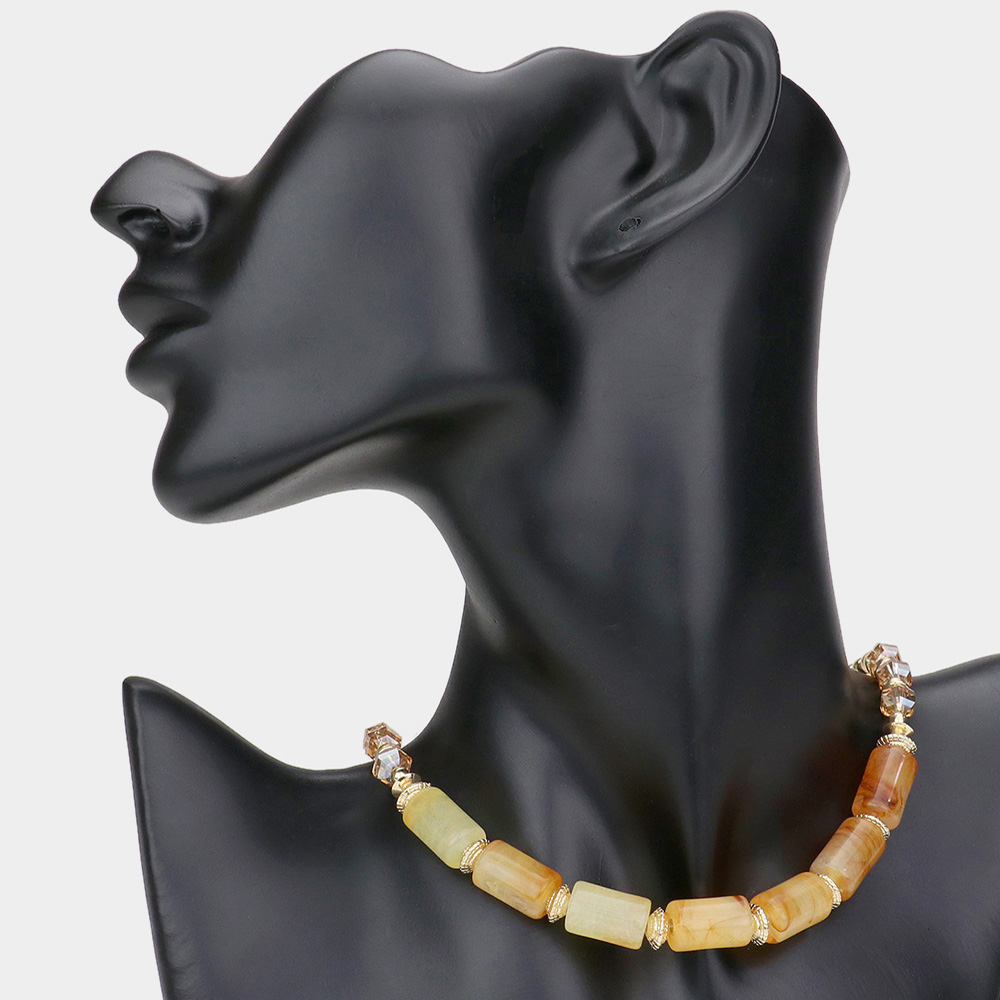 Marquise Glass Stone Cluster Pearl Embellished Vine Evening Necklace