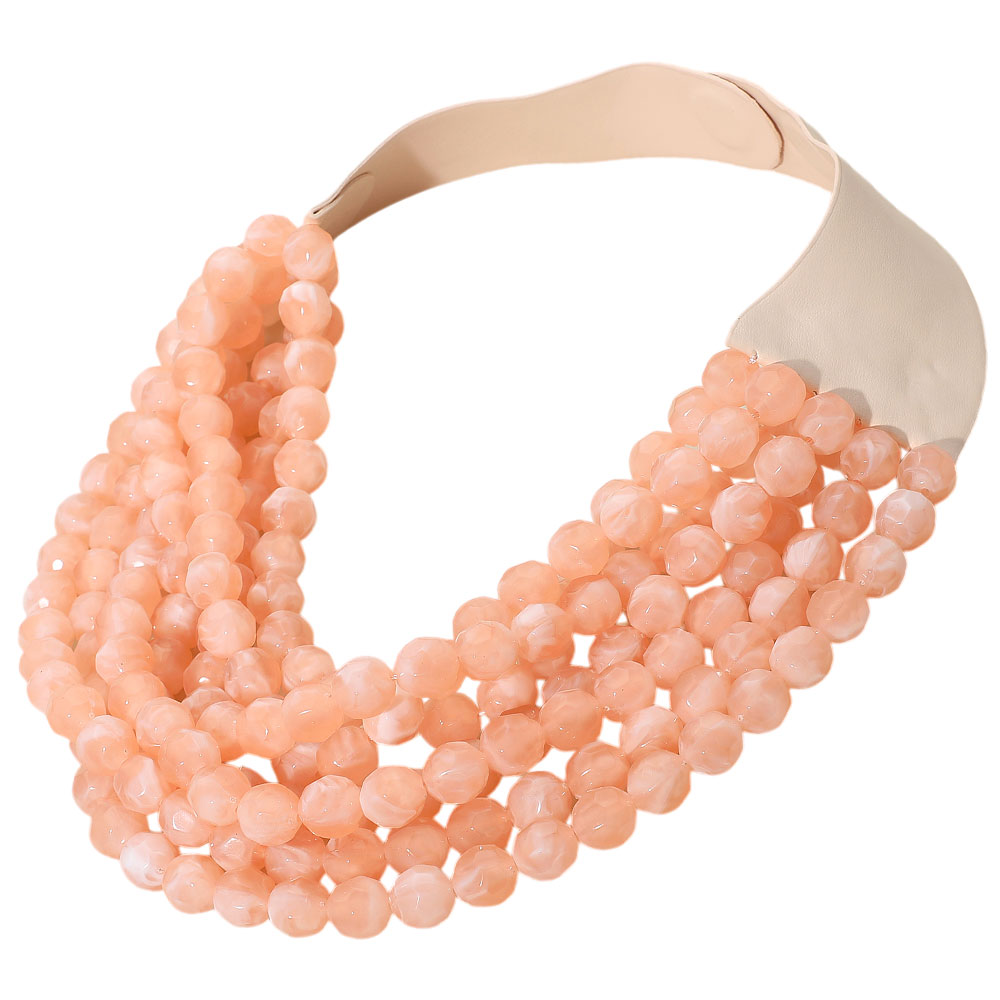 Marbled Faceted Ball Beaded Multi Layered Faux Leather Magnetic Necklace