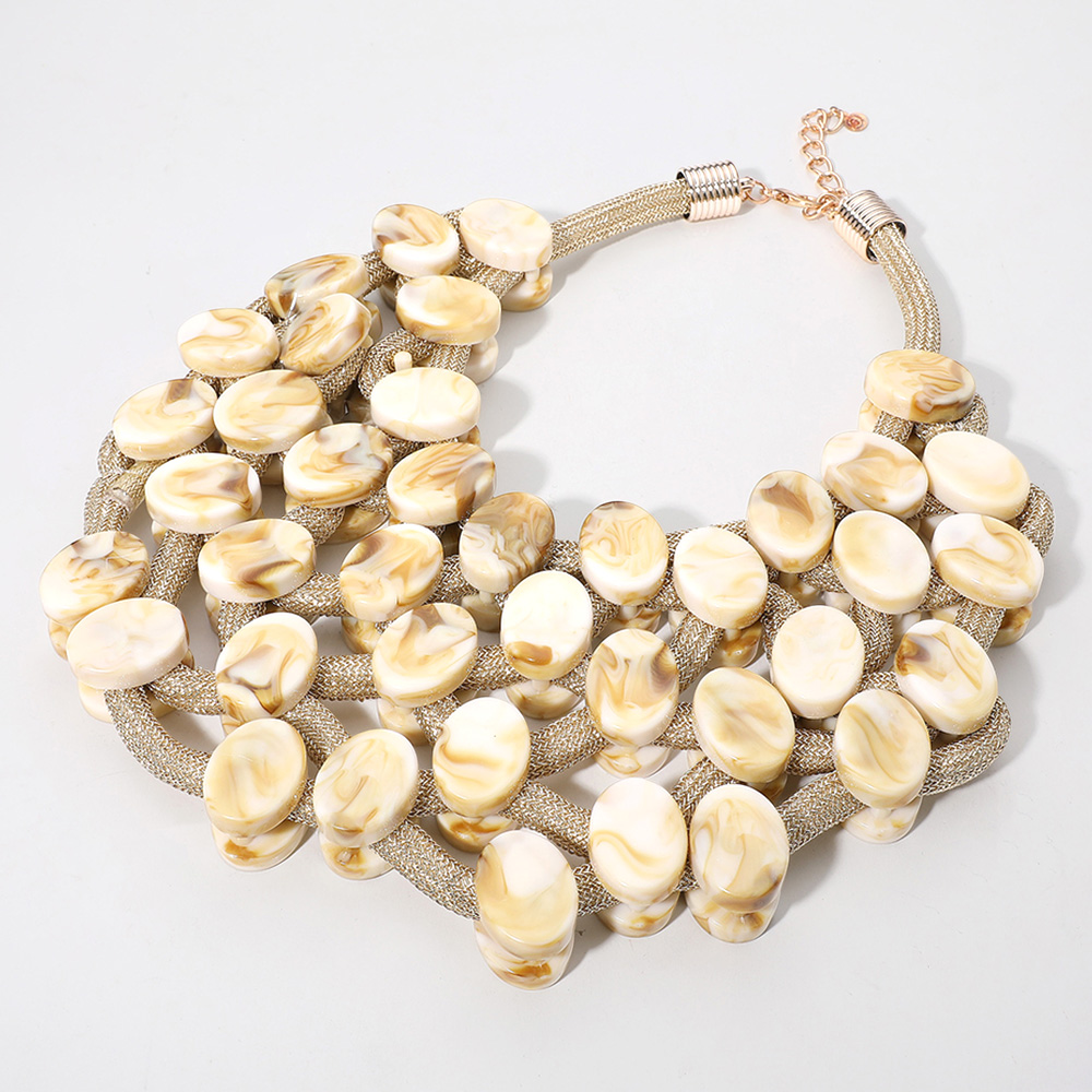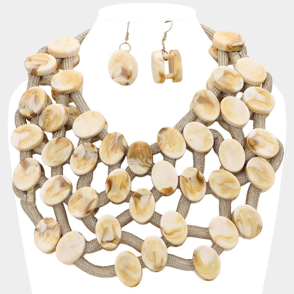 Gold Dipped Brass Metal Natural Stone Quatrefoil Station Necklace