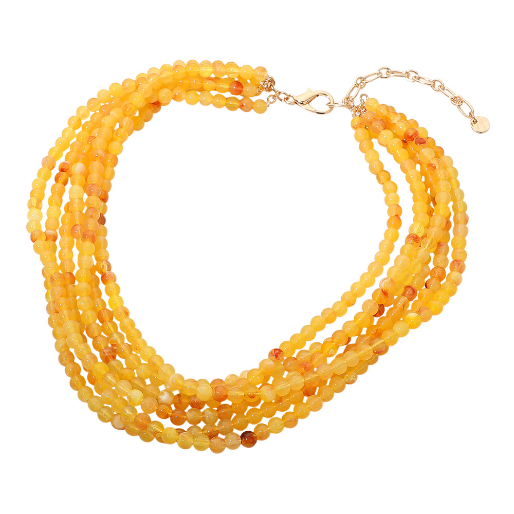 Marbled Resin Ball Beaded Multi Layered Statement Necklace