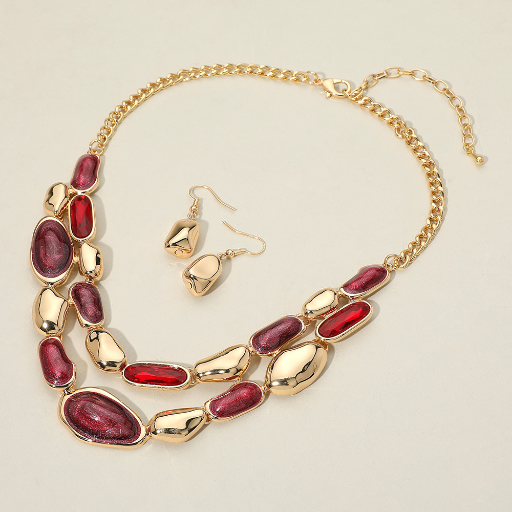 Rhinestone Embellished Abstract Triple Metal Link Necklace