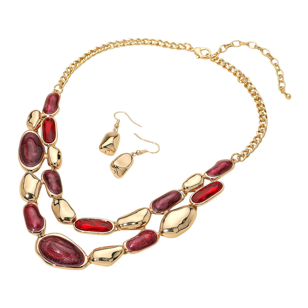 Marbled Resin Pebble Link Double Layered Statement Necklace