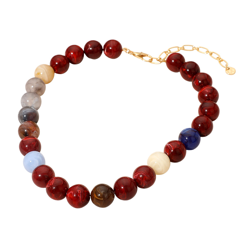 • Stylish necklace featuring polished round beads in a mix of tones, complemented by an adjustable chain for versatile wear. A perfect accessory to elevate casual outfits or add a playful touch to evening ensembles.