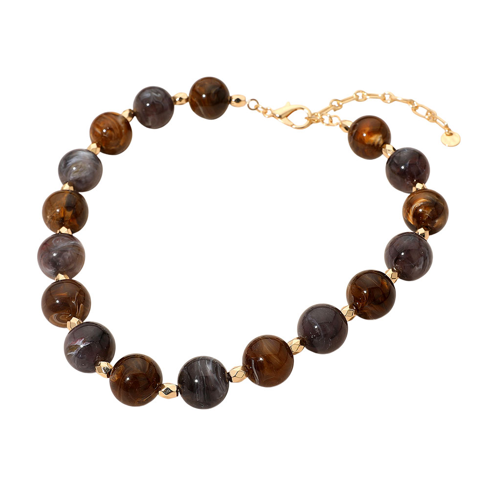• Elegant necklace featuring polished round beads with metallic spacers and an adjustable chain closure. A versatile piece that brings a refined yet modern touch to both casual looks and special occasion outfits.