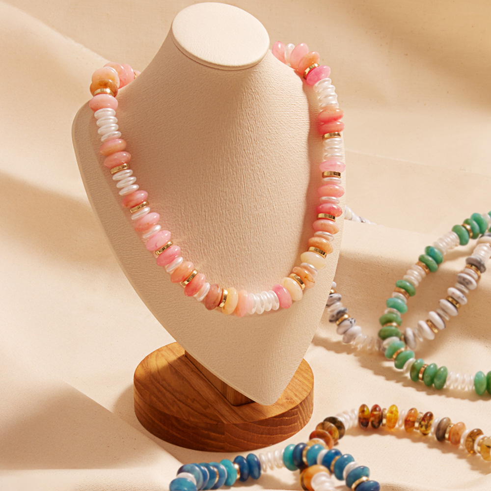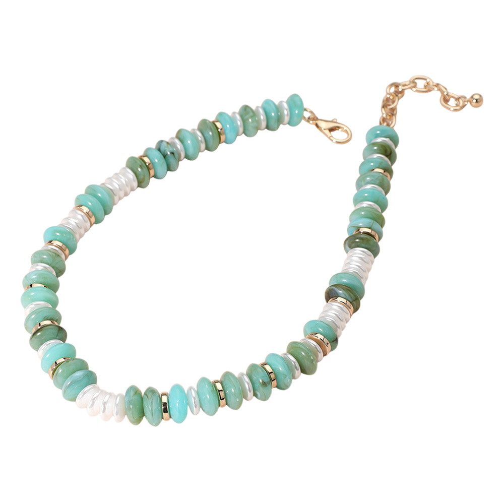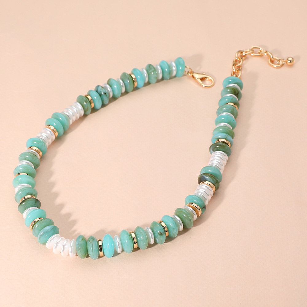 Marbled Round Shaped Beads Pearl Beaded Necklace