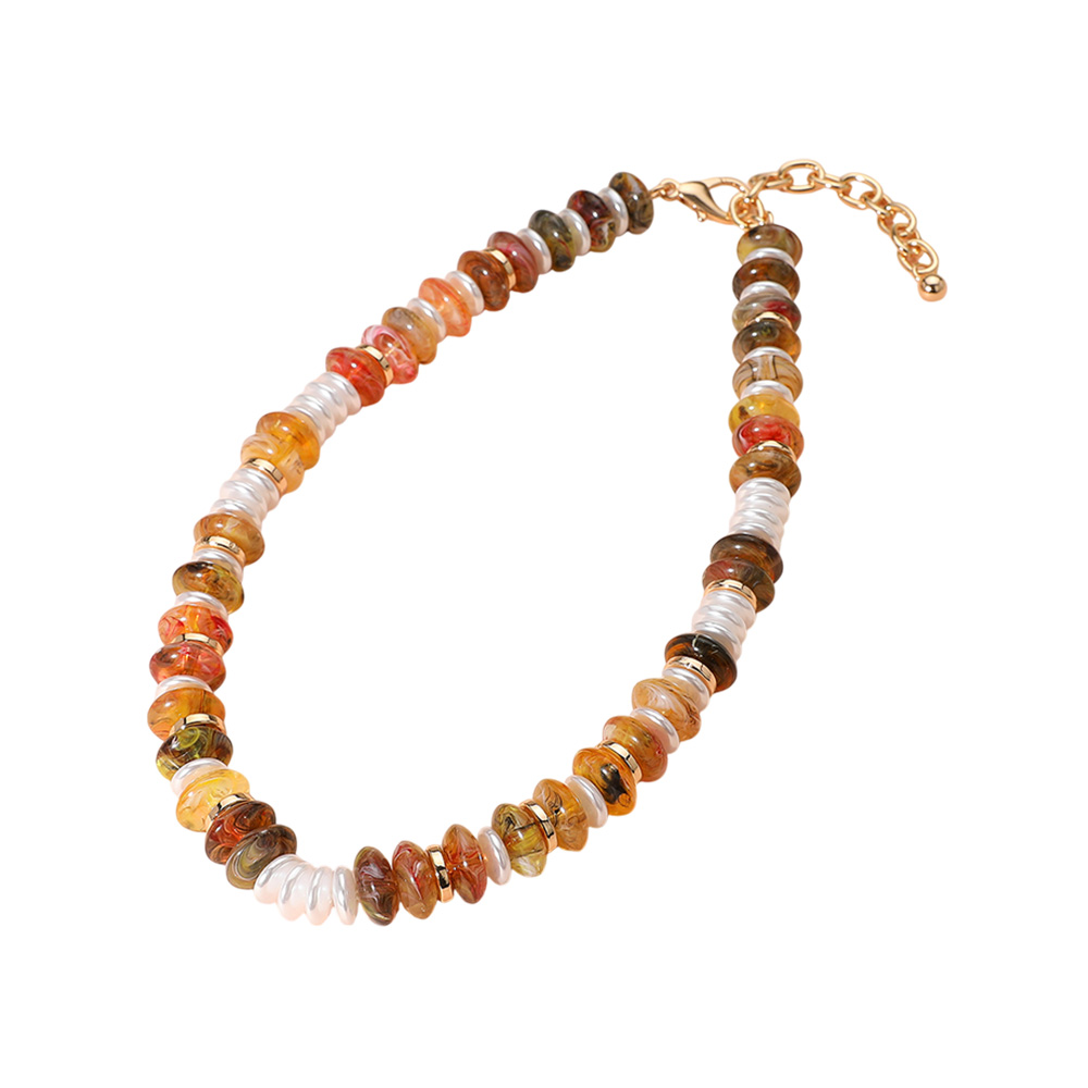 Marbled Round Shaped Beads Pearl Beaded Necklace