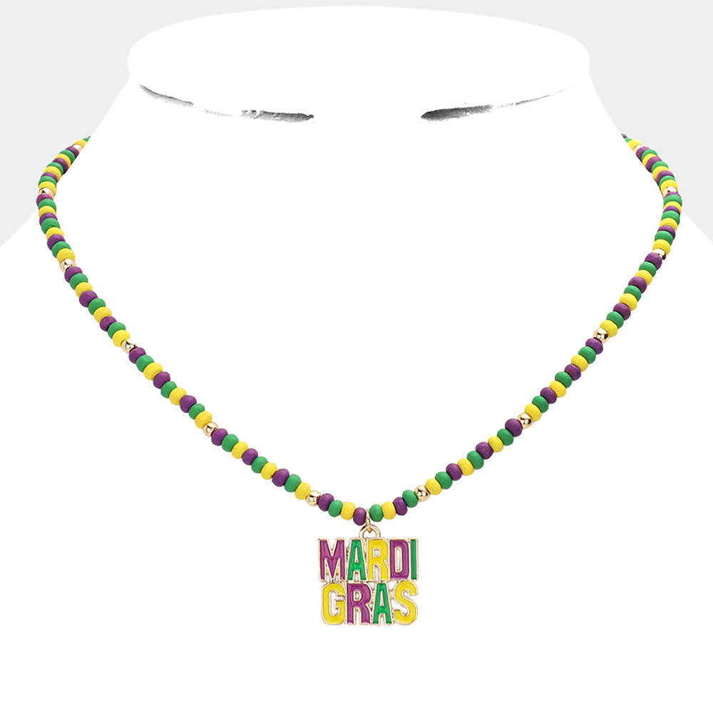 Mardi Gras Mask Pendant Wood Ball Necklace