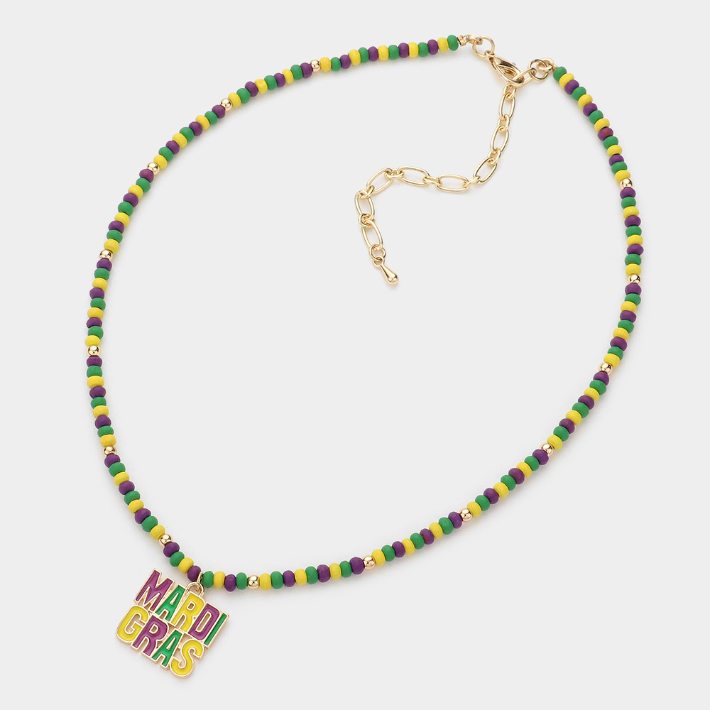 Mardi Gras Fleur de Lis Pendant Wood Ball Necklace