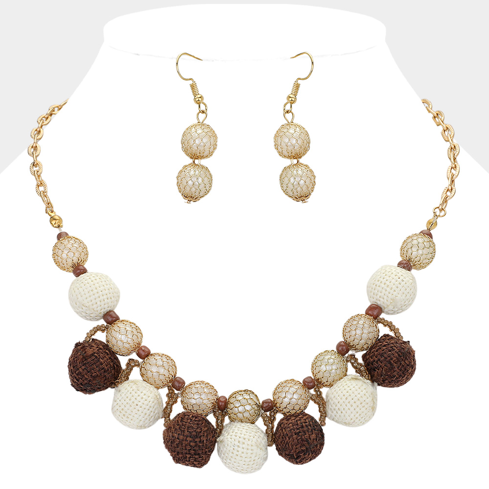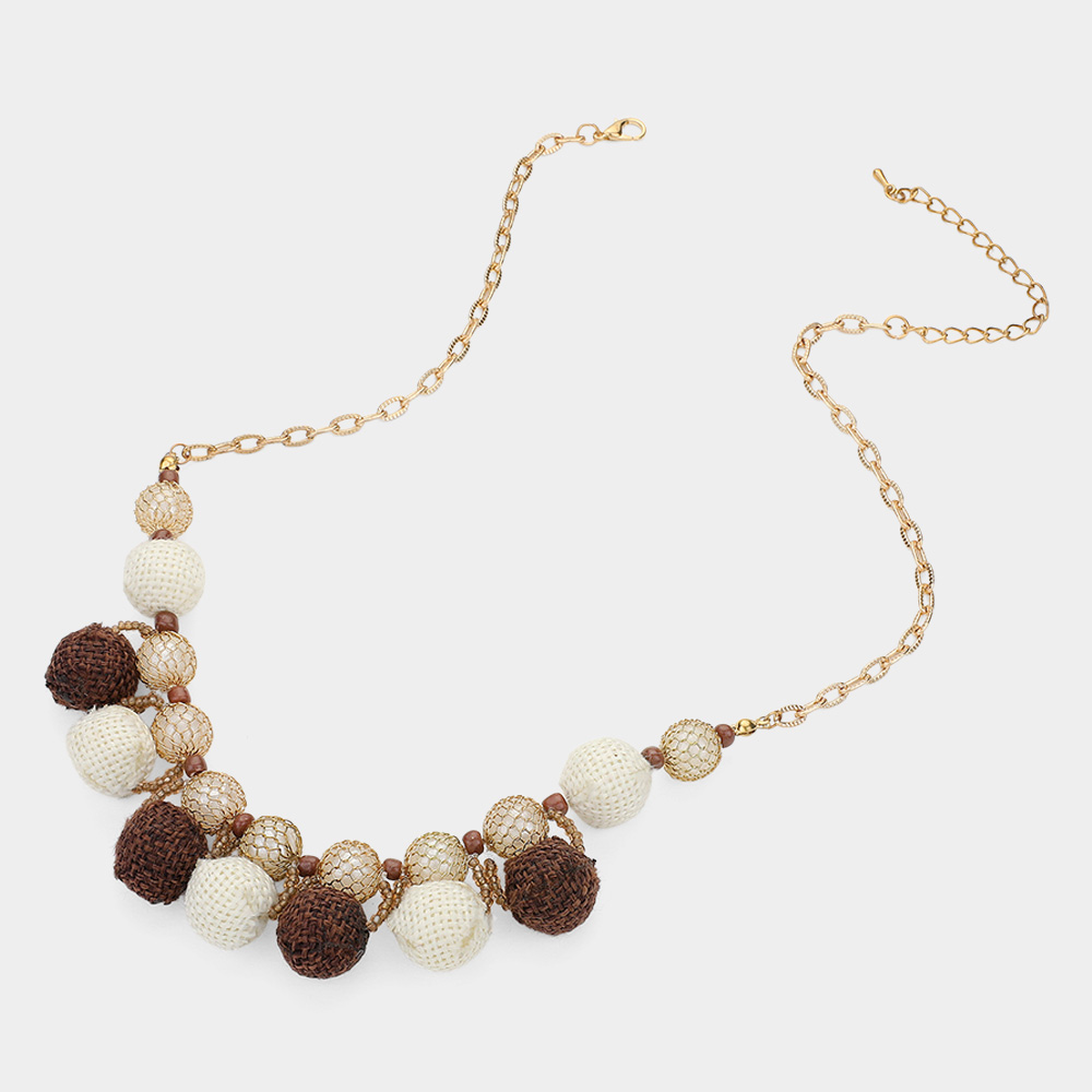 Marbled Faceted Ball Beaded Multi Layered Faux Leather Magnetic Necklace