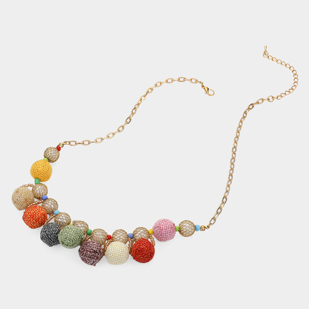 Mesh Ball & Wire Wrapped Chain Necklace