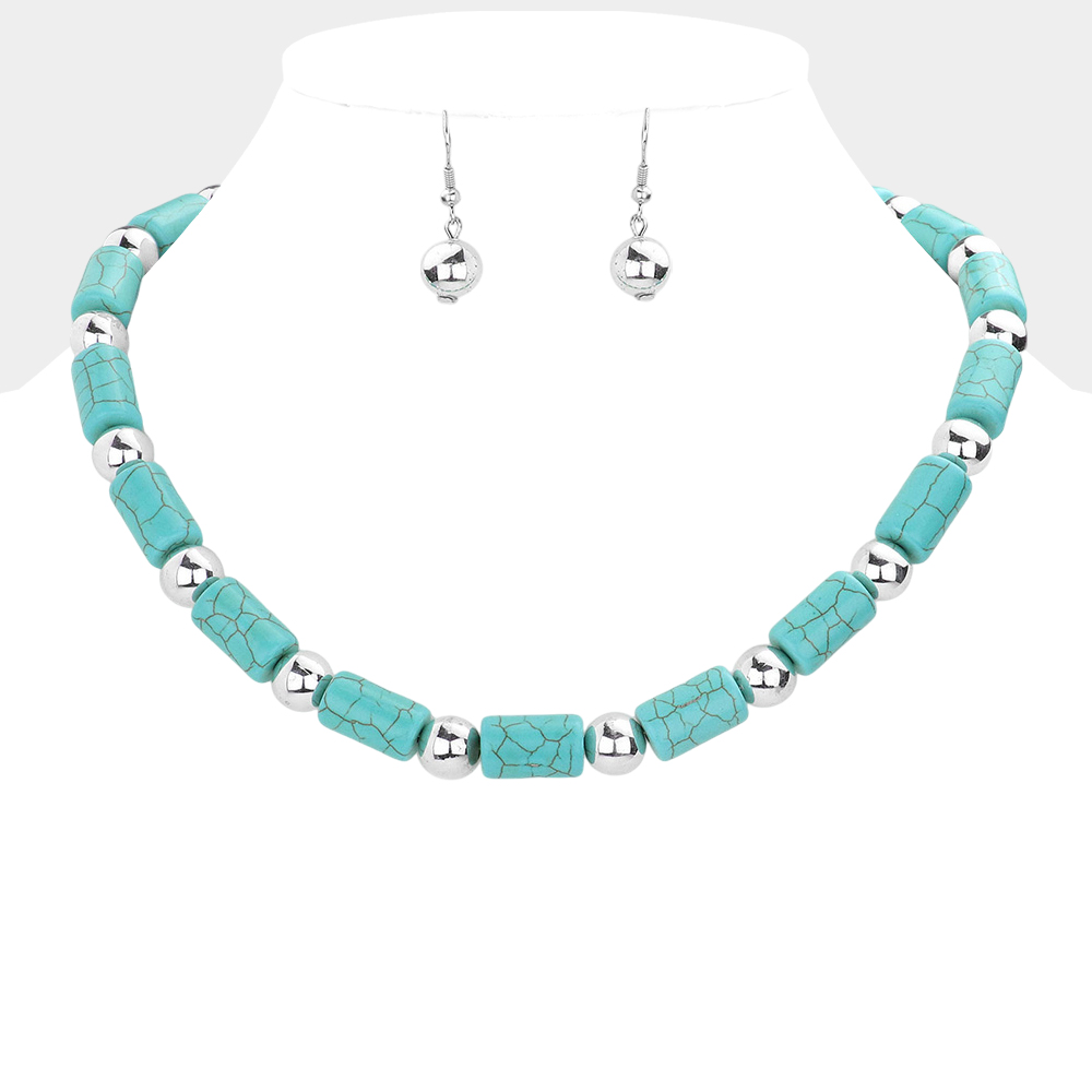 Western Bohemian Cross Stone Pendant Accent Necklace