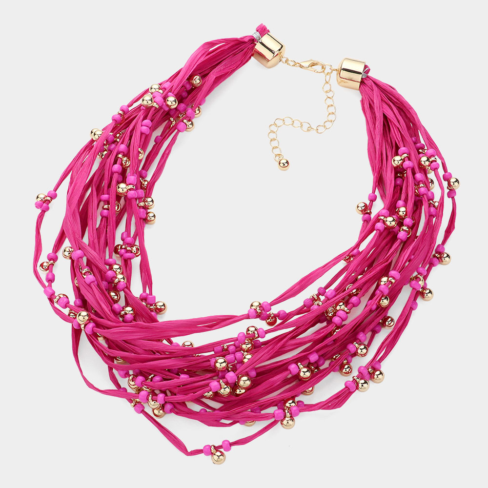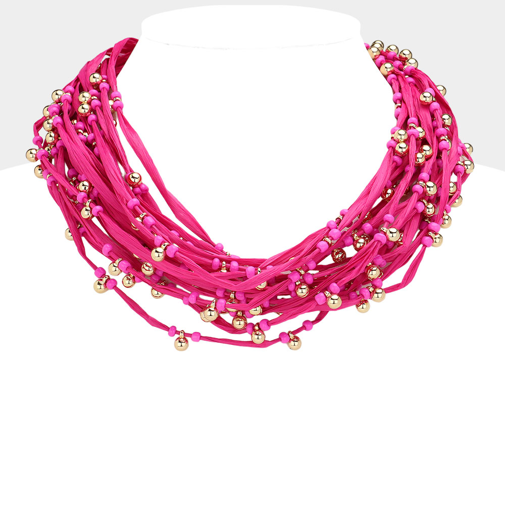 Metal Ball Beads Pointed Raffia Thread Multi Layered Necklace