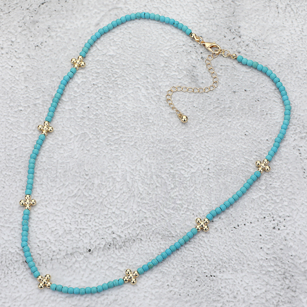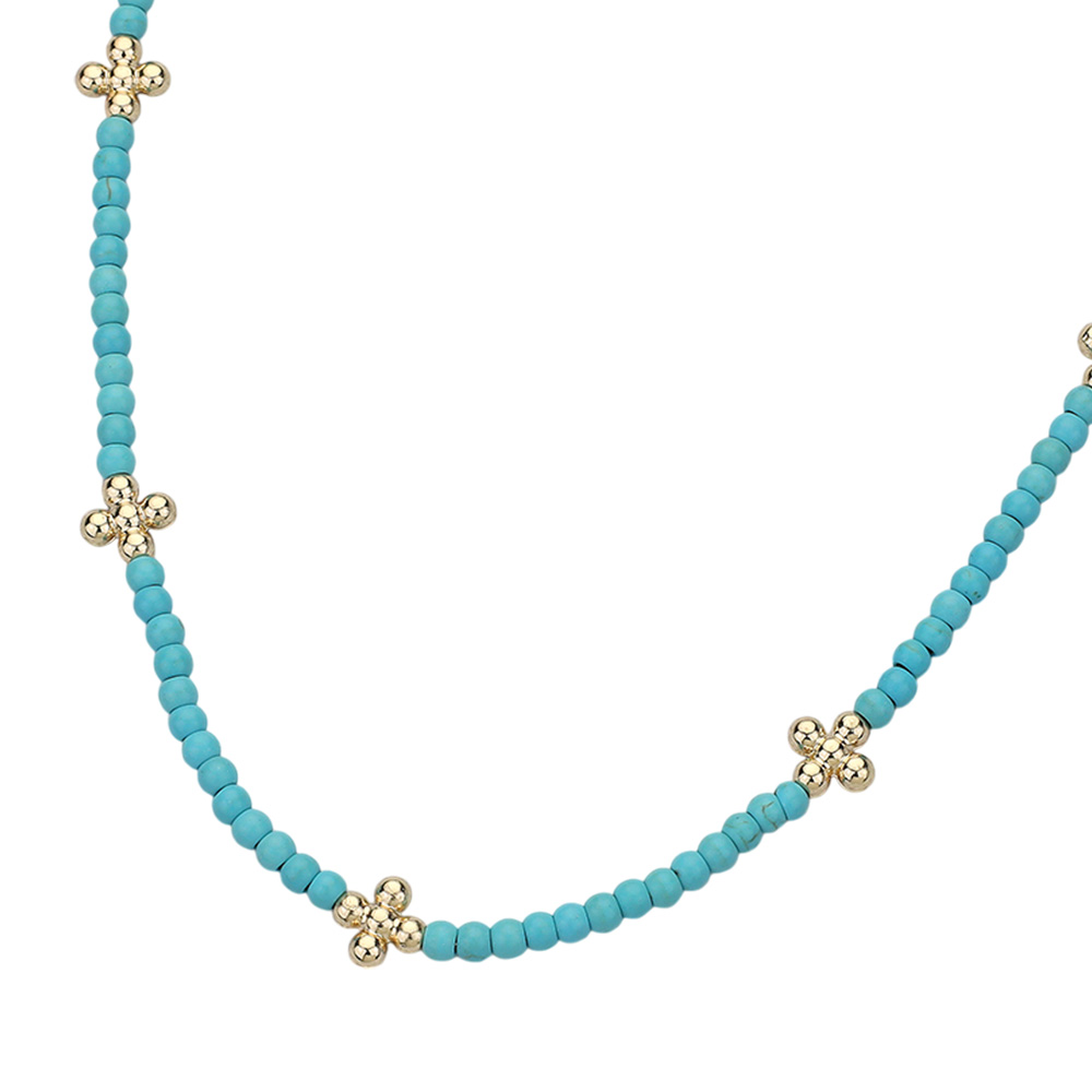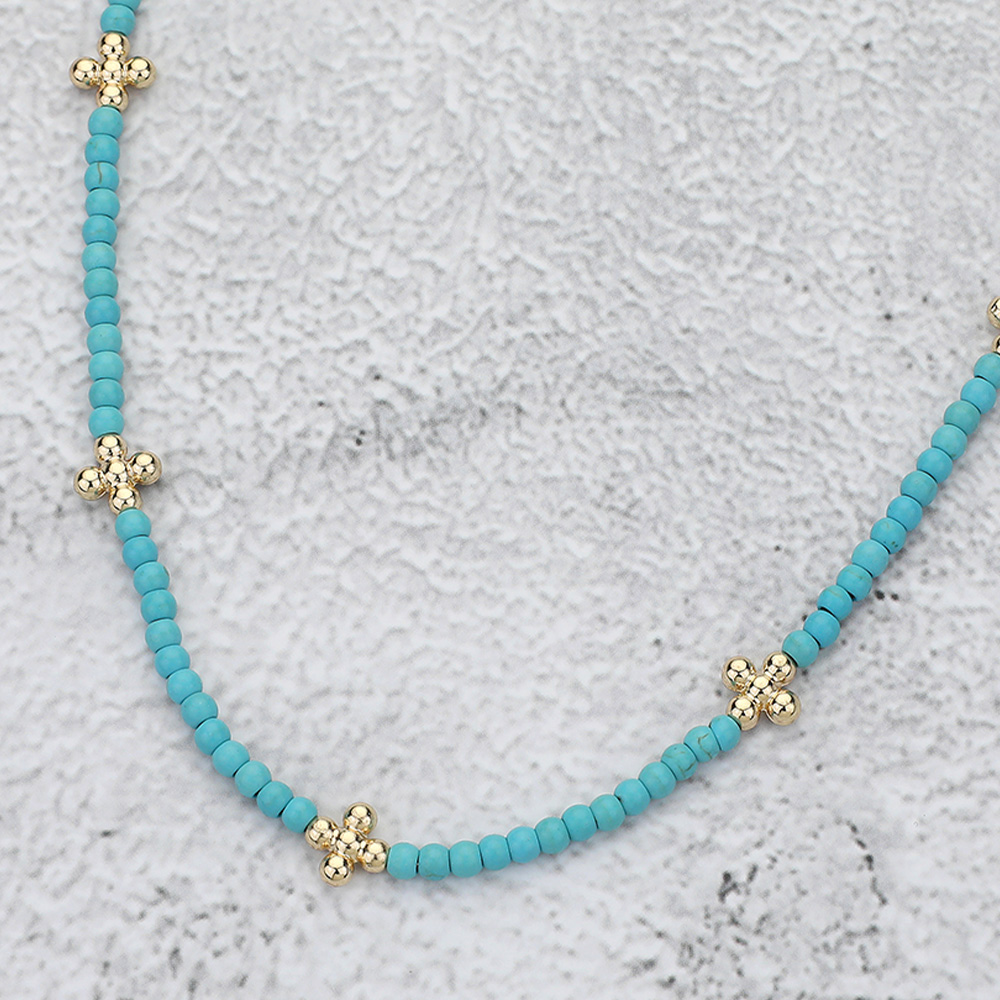 Gold Dipped Natural Stone Quatrefoil Station Necklace