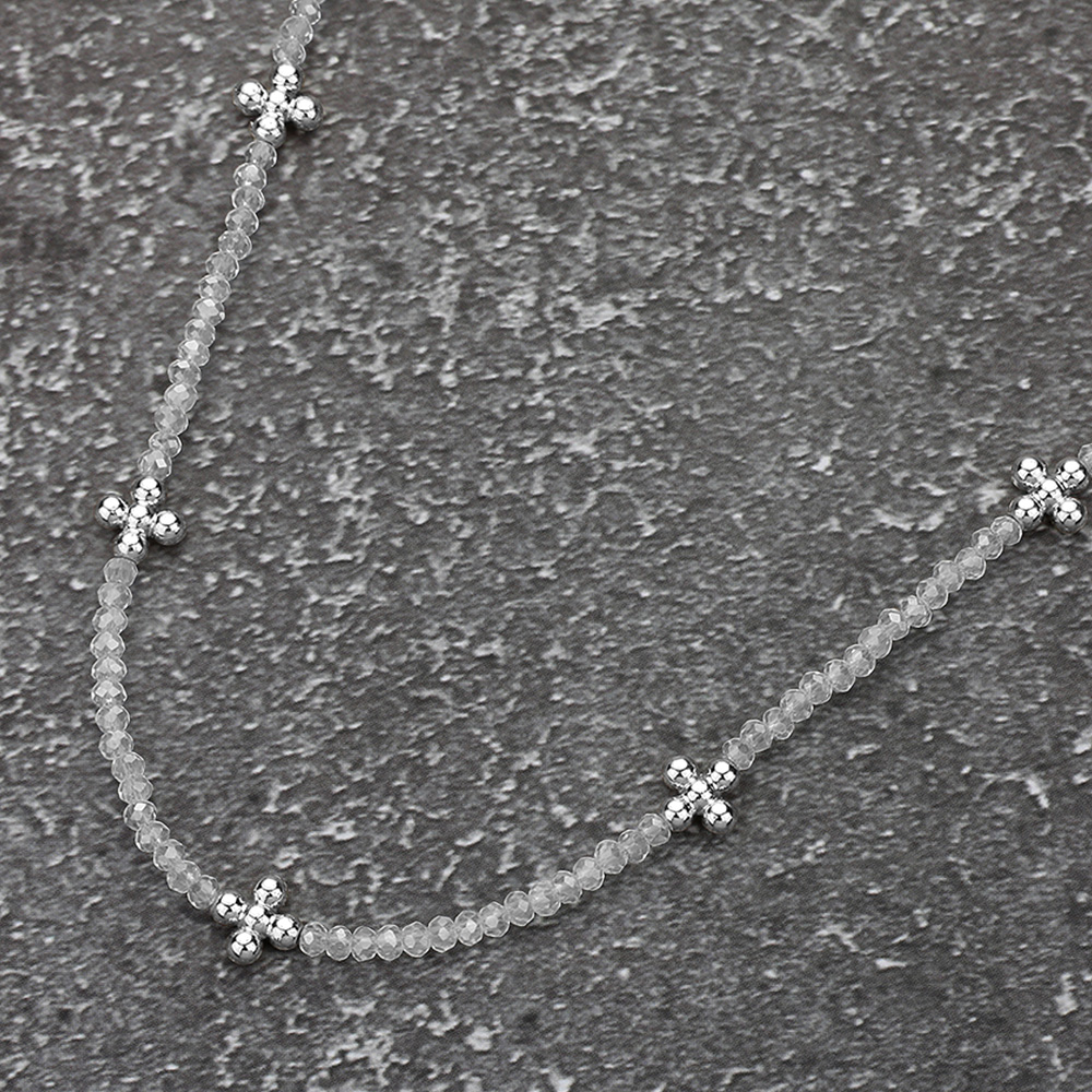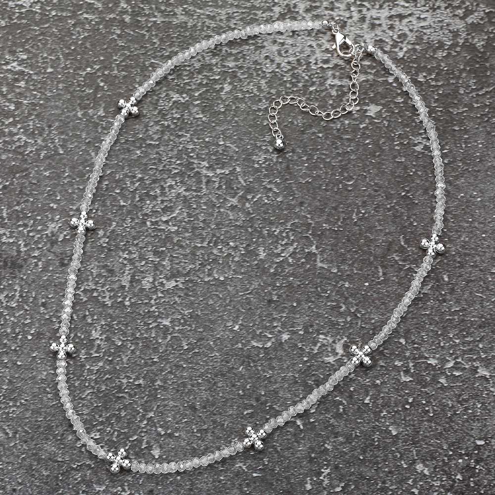 Metal Bubble Flower Pointed Faceted Beaded Necklace