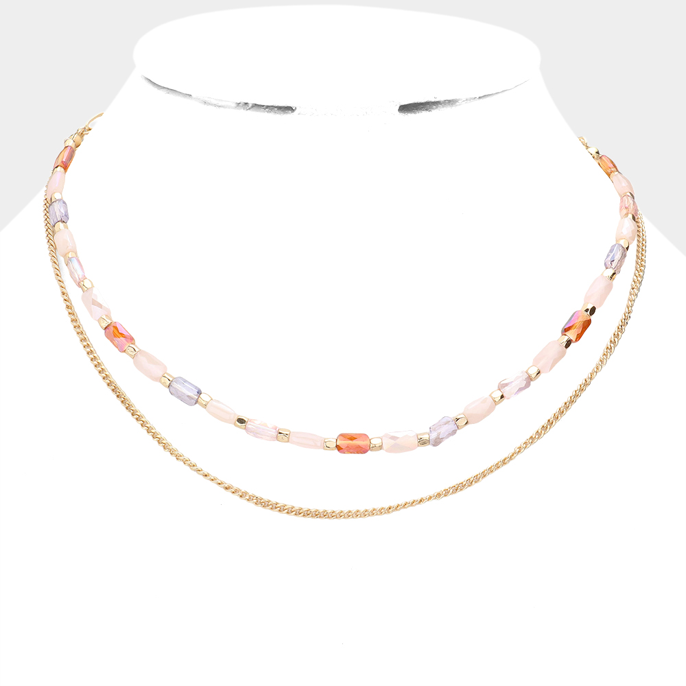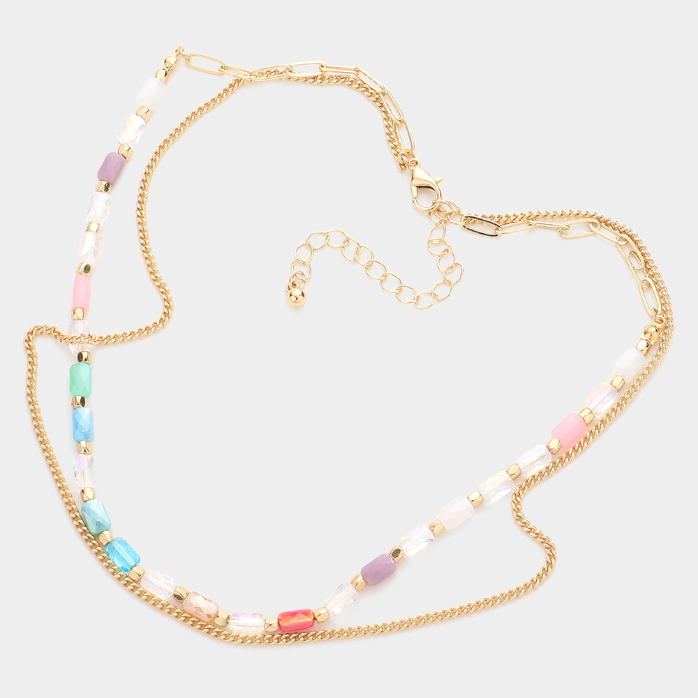Metal Chain Colorful Rectangle Beaded Double Layered Necklace