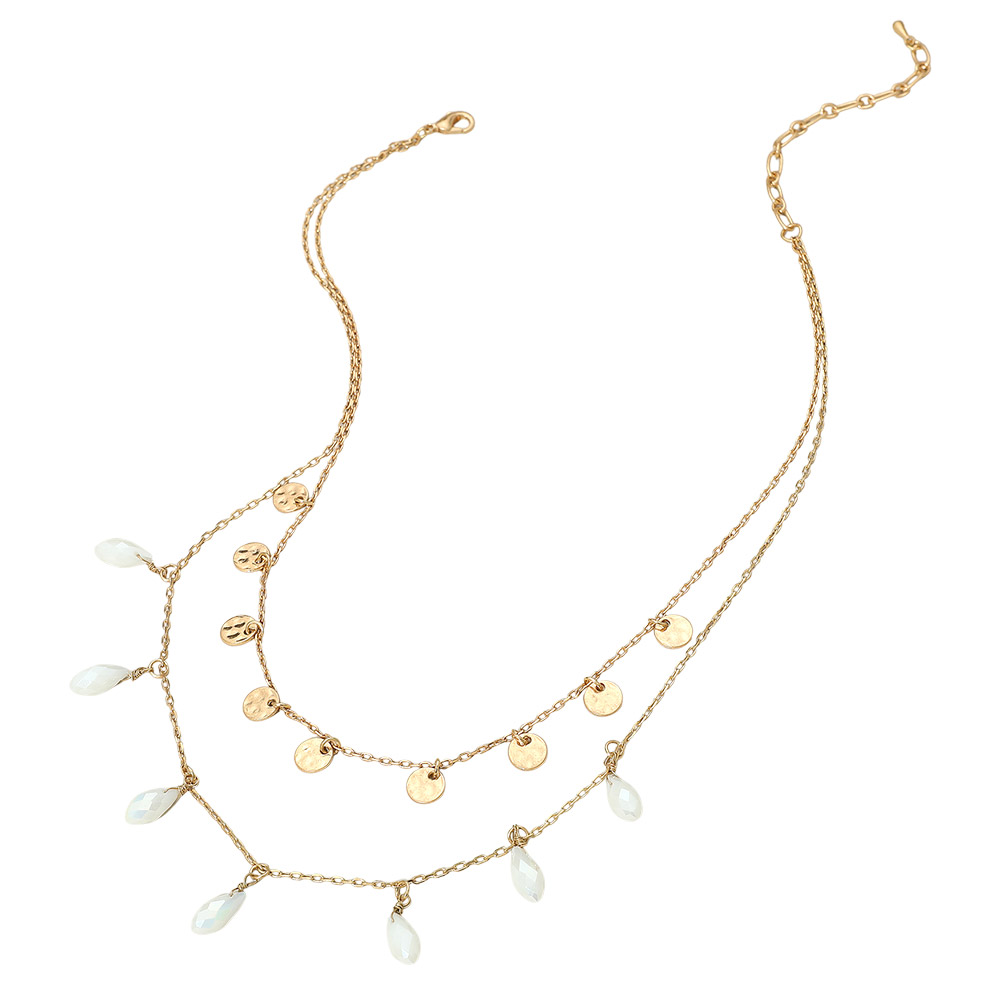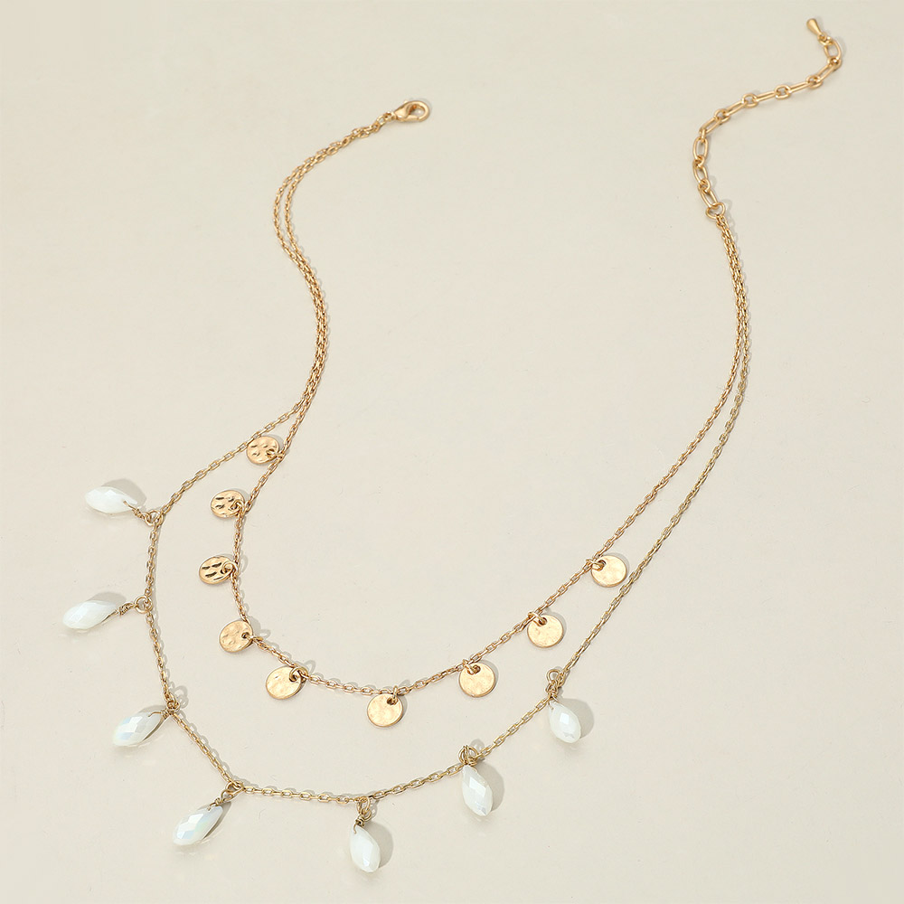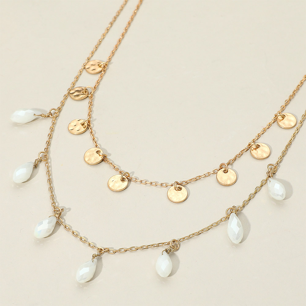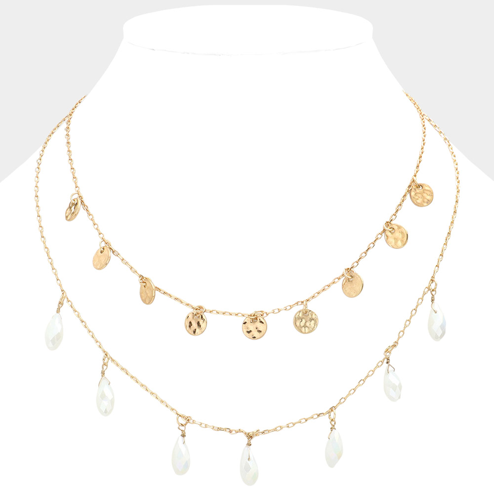 Metal Disc Teardrop Bead Station Double Layered Necklace