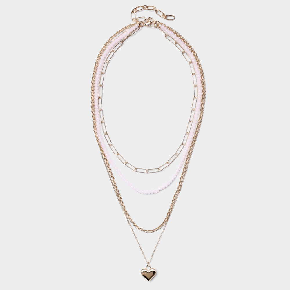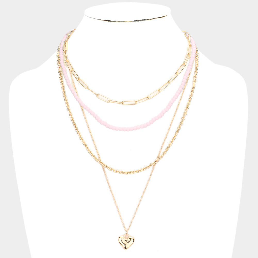 Open Metal Heart Accented Multi Layered Faceted Beaded Stretch Bracelet