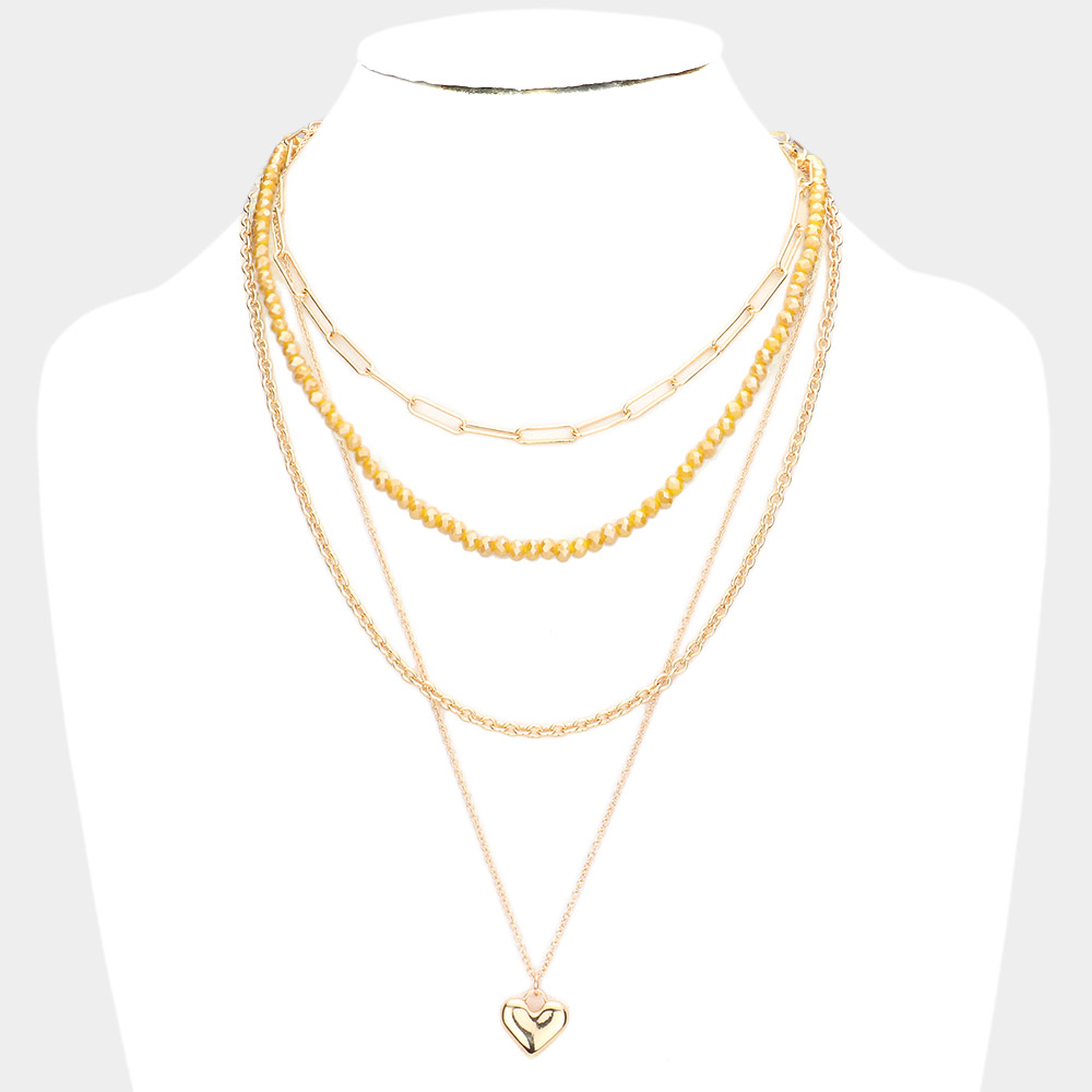 Metal Heart Pendant Multi Layered Necklace
