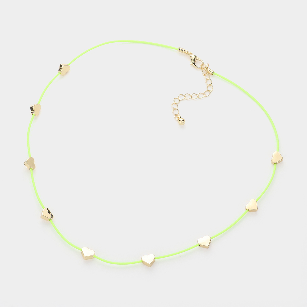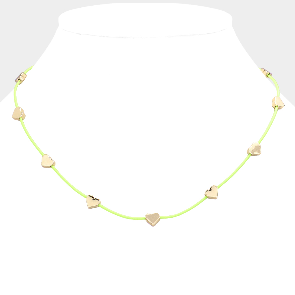 Metal Heart Pendant Wood Natural Stone Double Layered Necklace