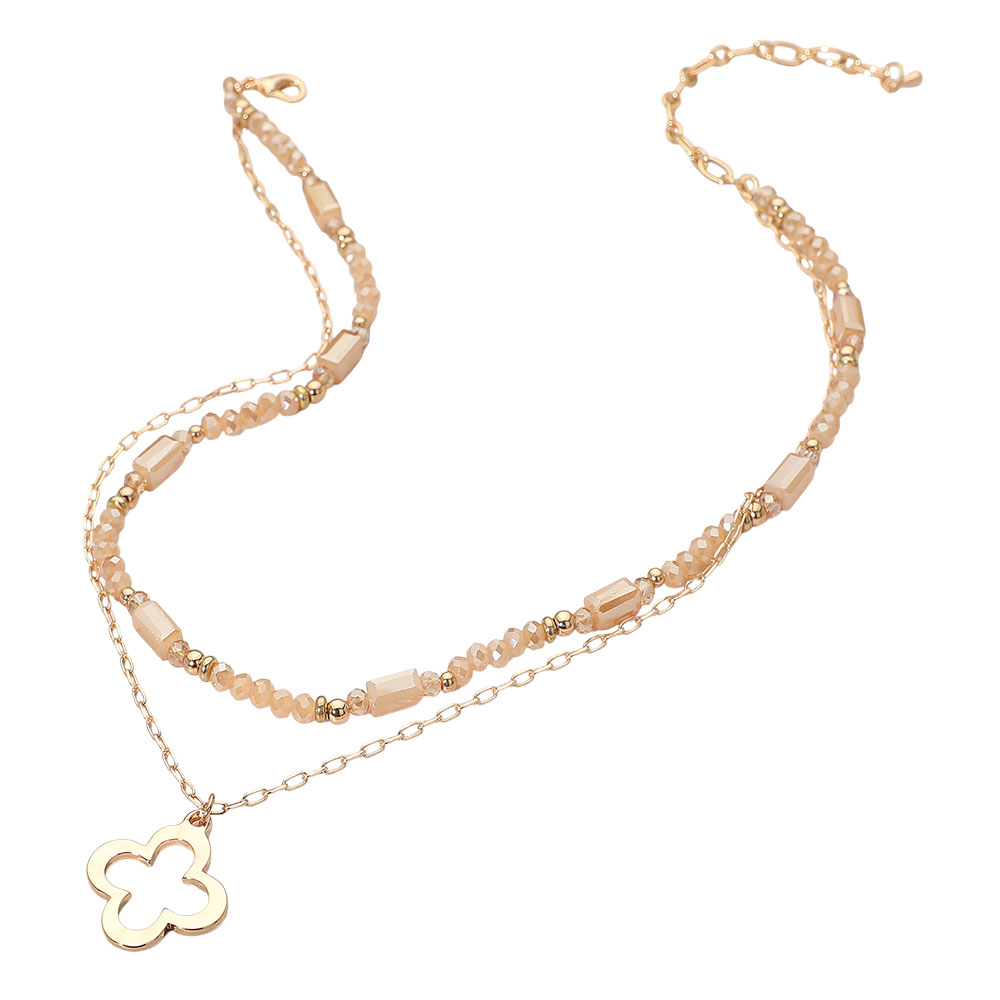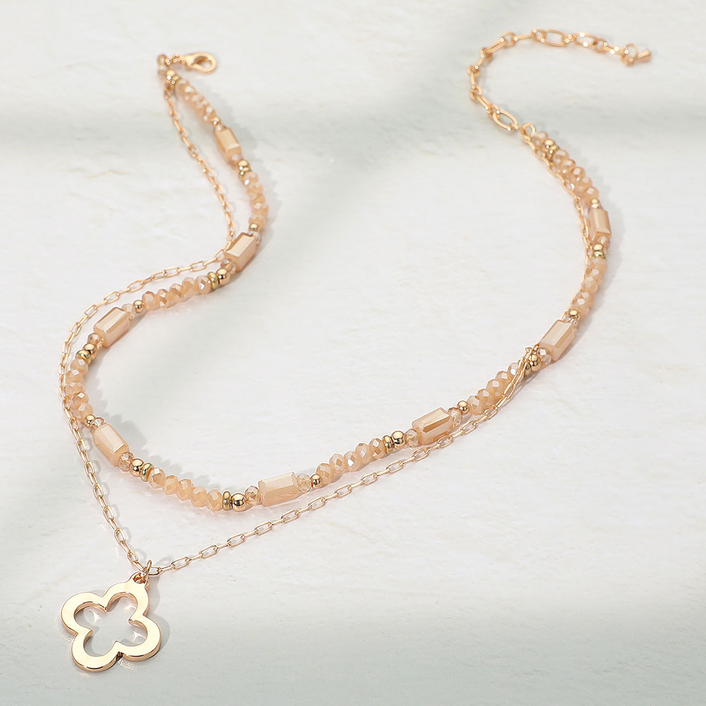 Metal Open Quatrefoil Pendant Faceted Beaded Layered Necklace