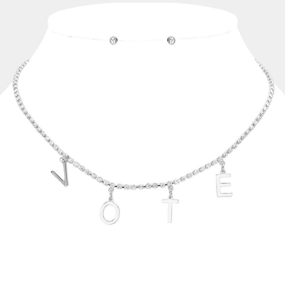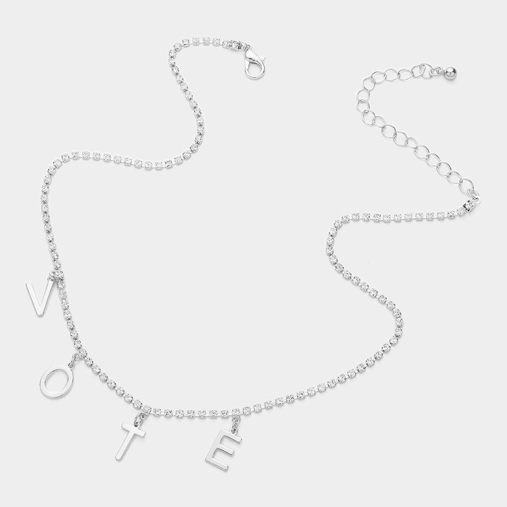 Metal VOTE Initial Message Station Rhinestone Chain Necklace
