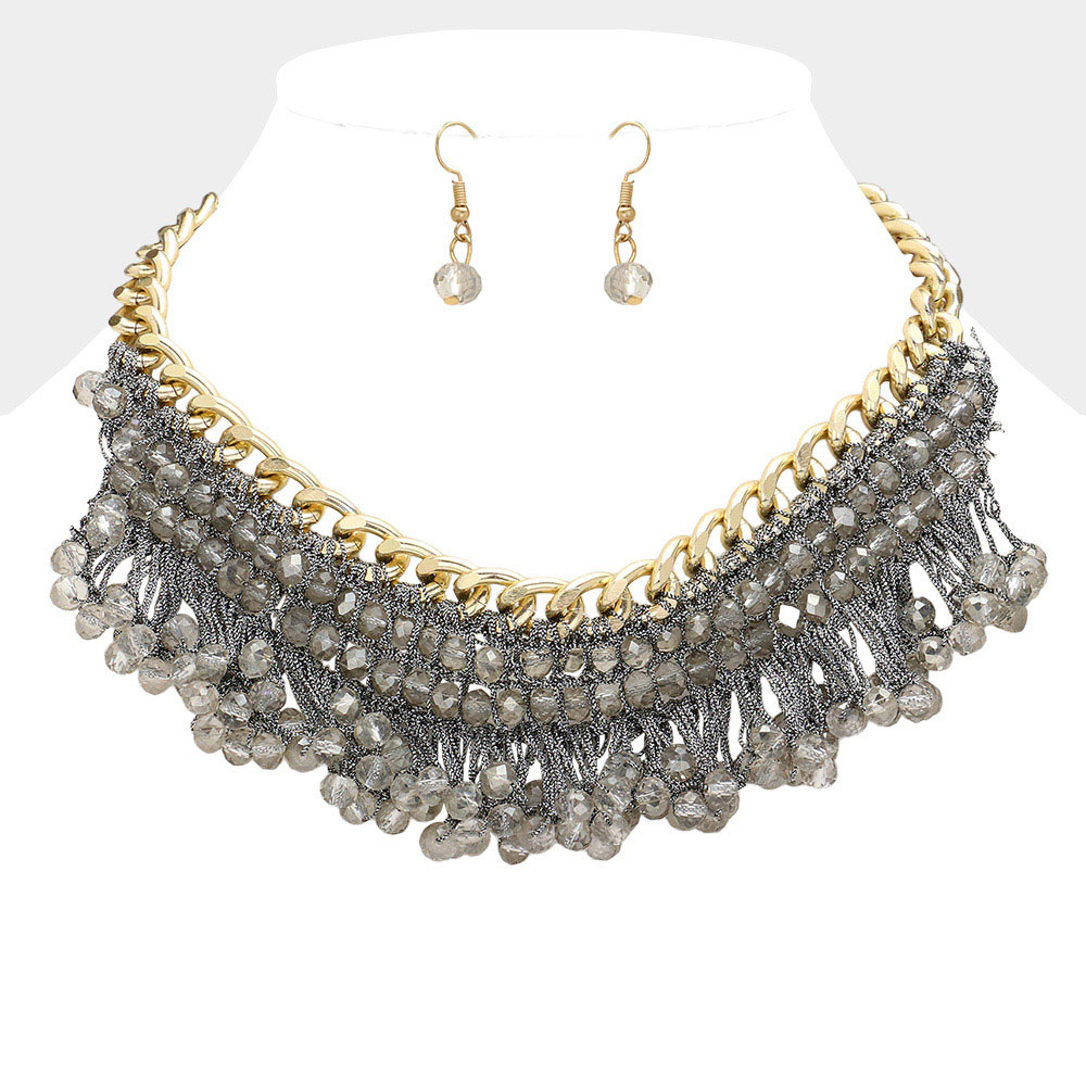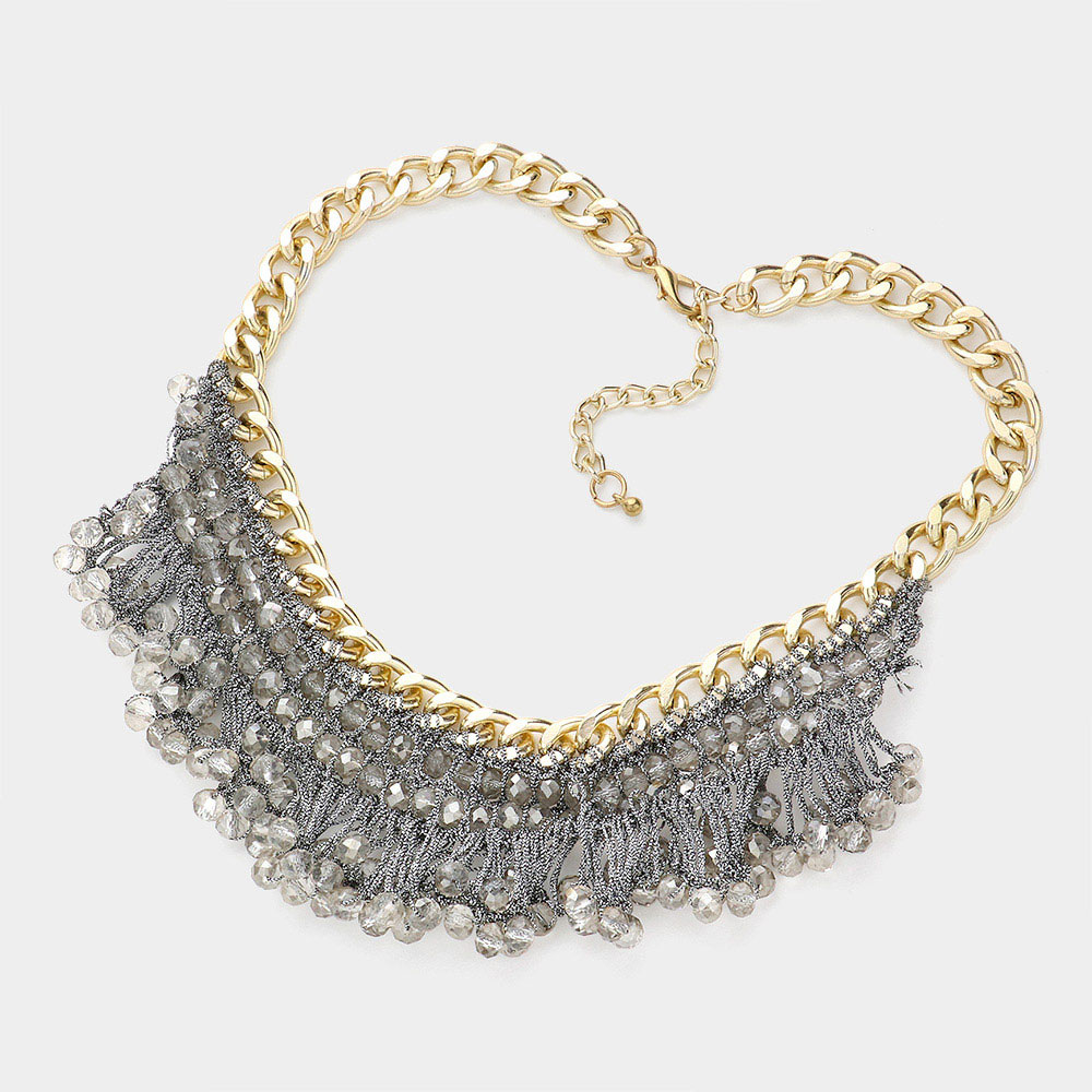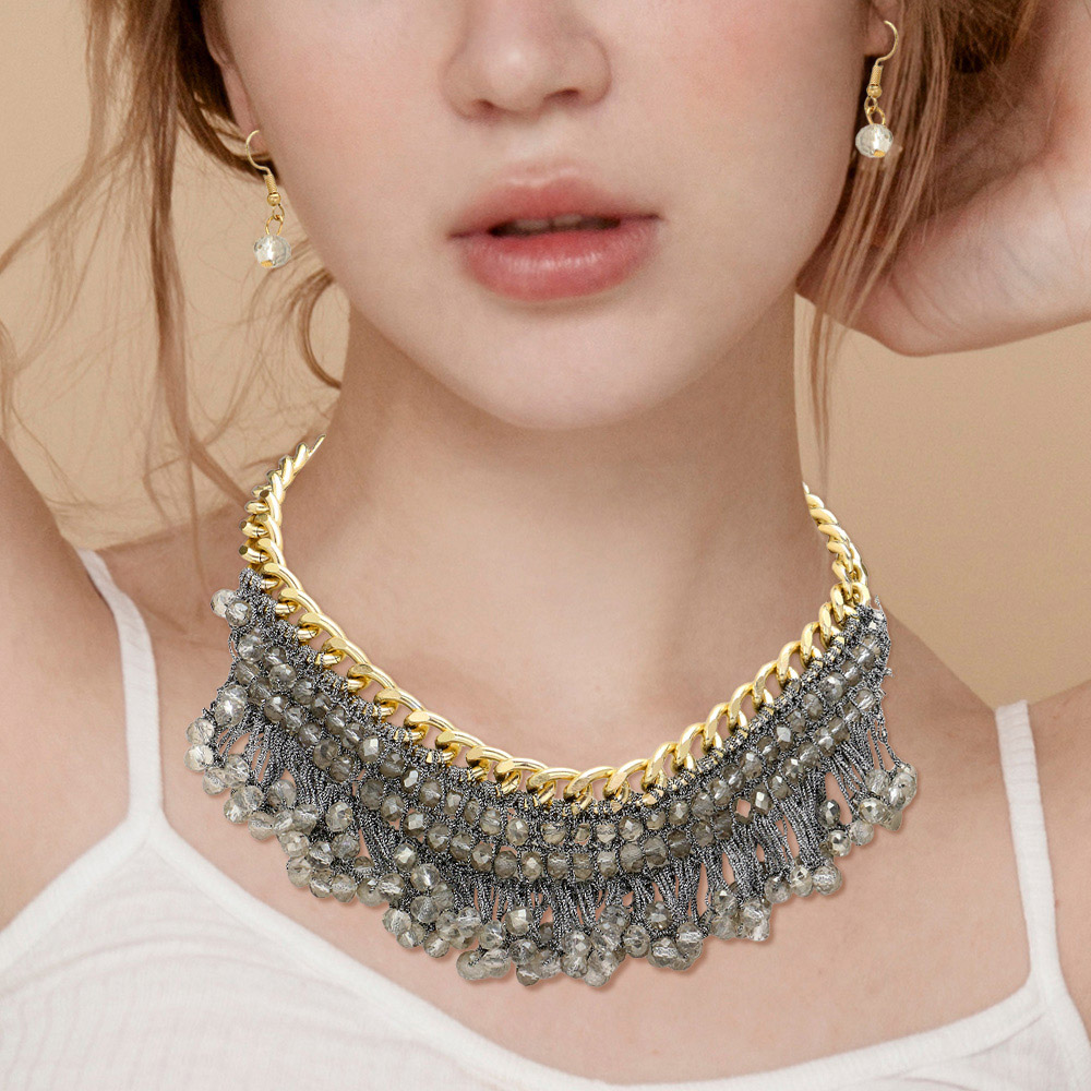 Round Stone Centered Rhinestone Embellished Choker Necklace