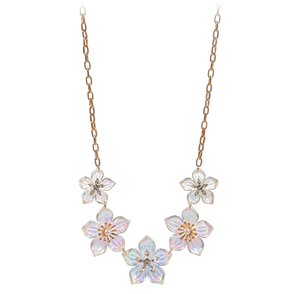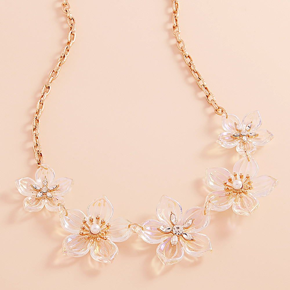 Stone Paved Flower Disc Pointed Metal Pendant Necklace