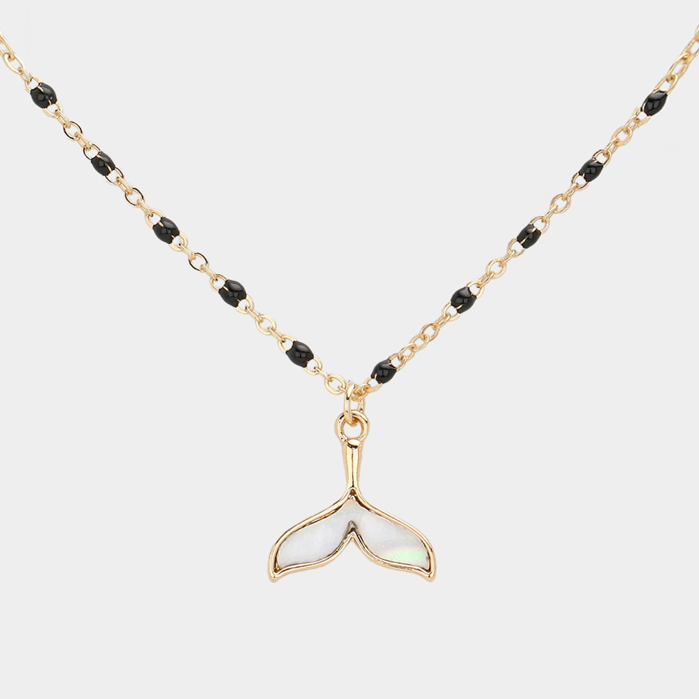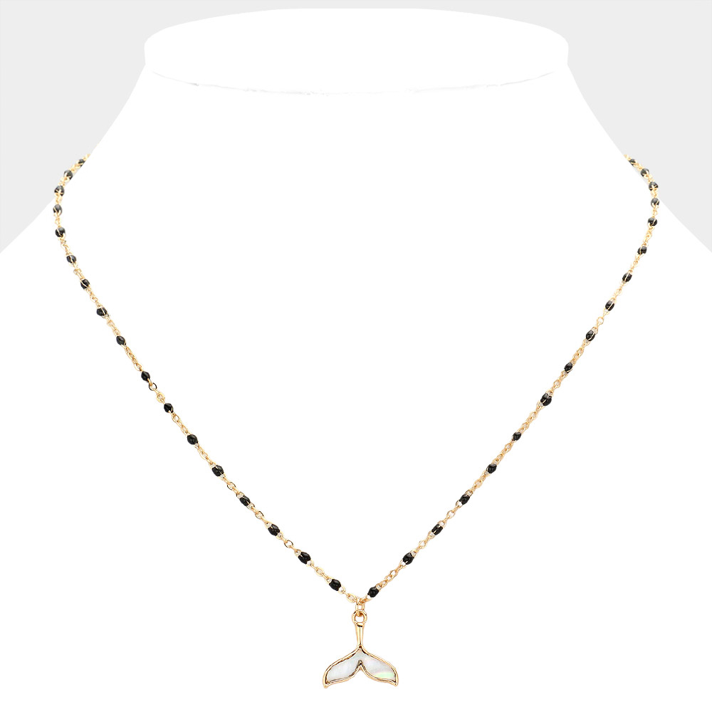 Mother Of Pearl Beads Station Whale Tail Pendant Necklace