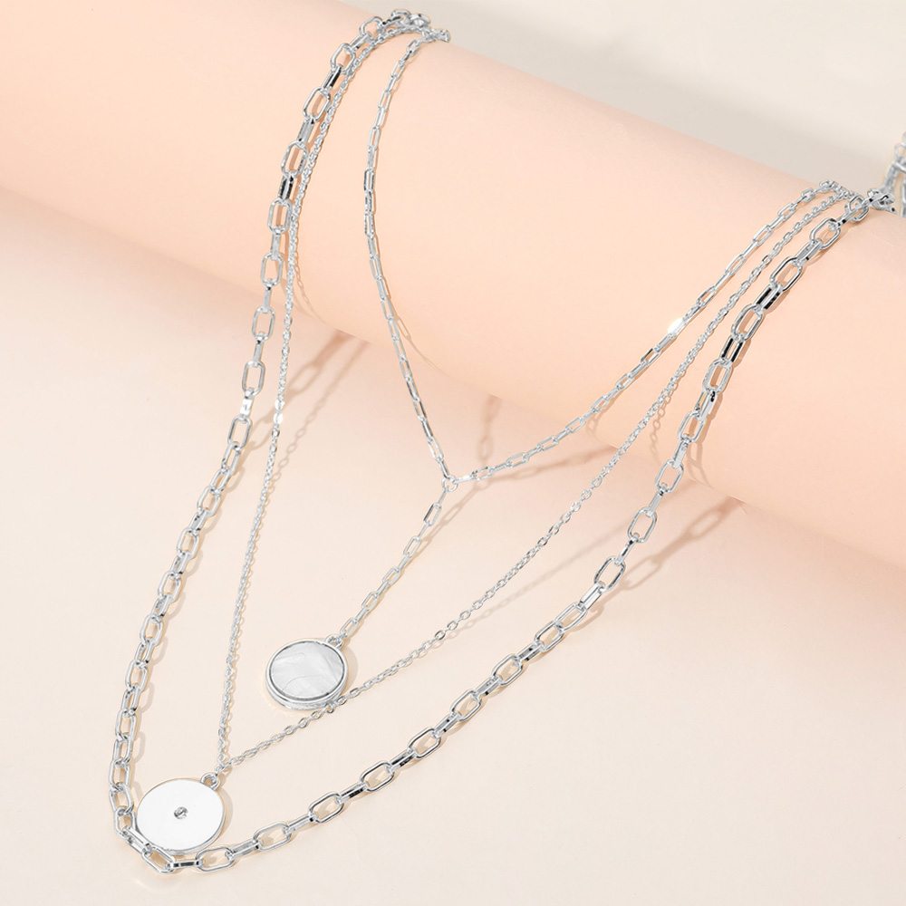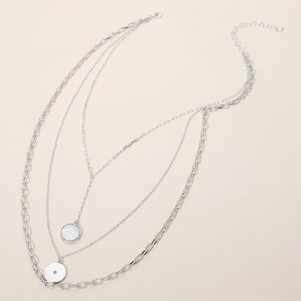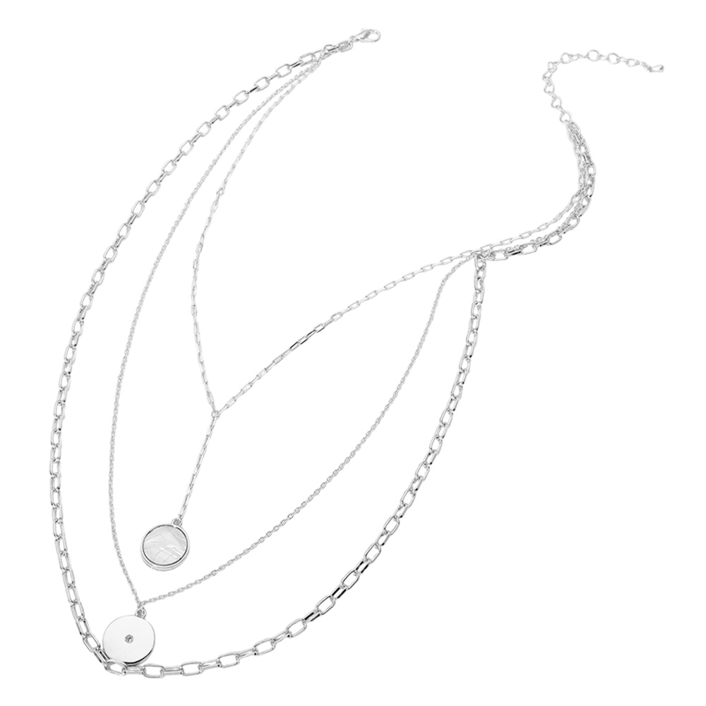 Mother of Pearl Medal Y Shaped Triple Layered Necklace